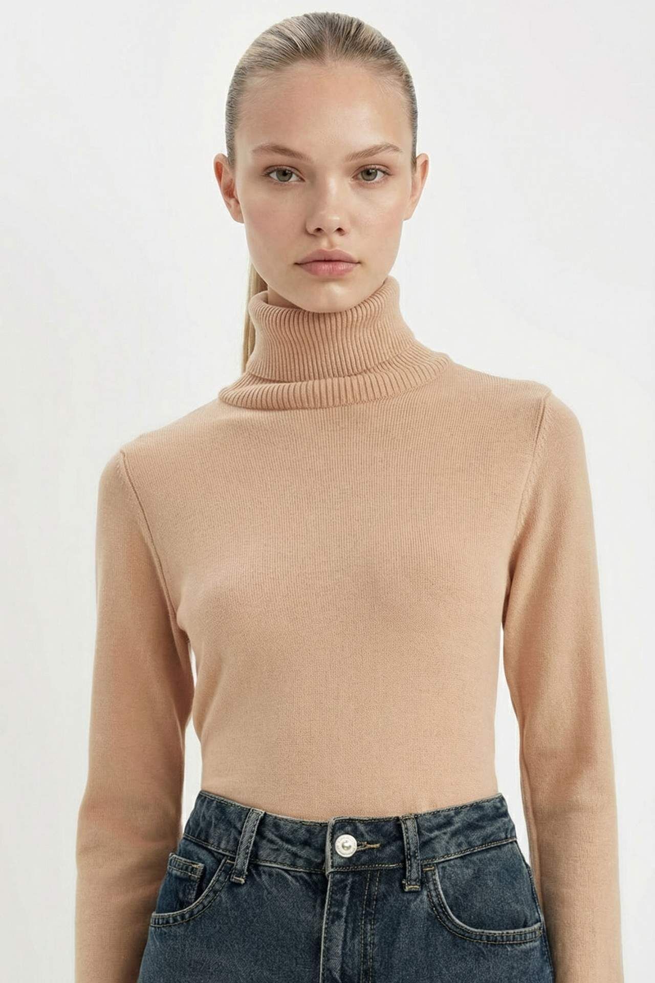 DeFacto Kadın Regular Fit Yumuşak Dokulu Balıkçı Yaka Basic Düz Triko Kazak