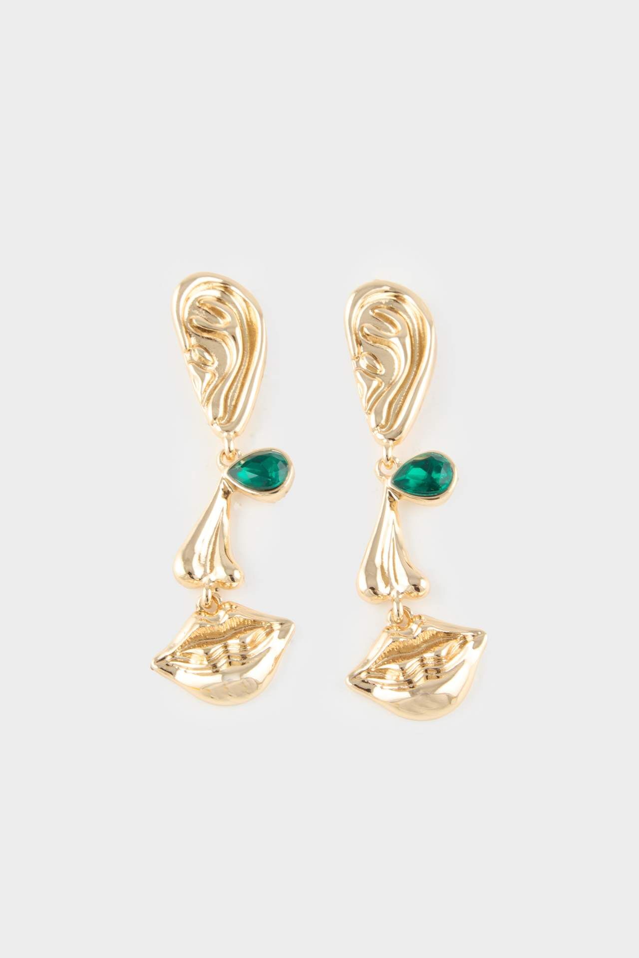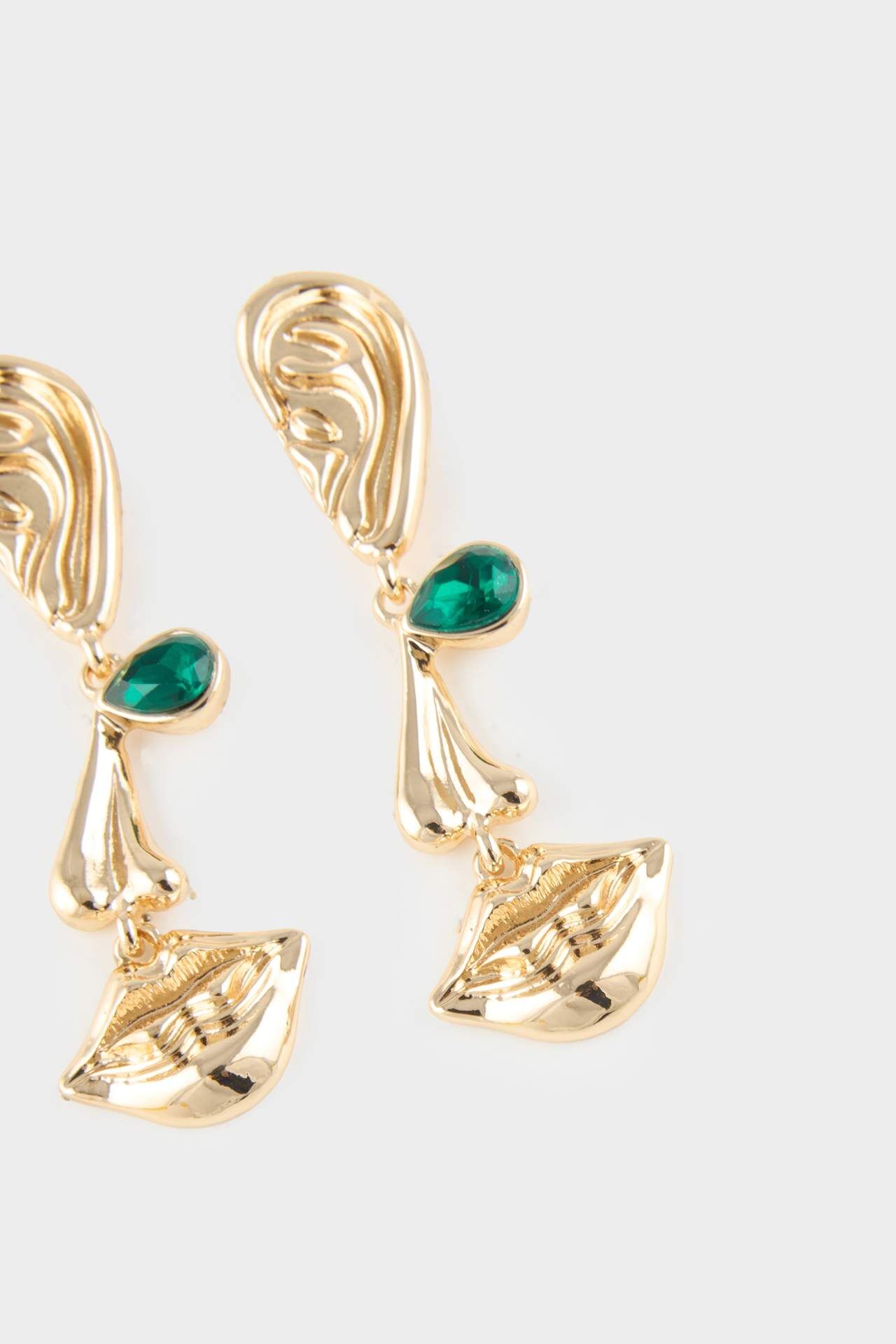 DeFacto Kadın Yeşil Taşlı Gold Küpe