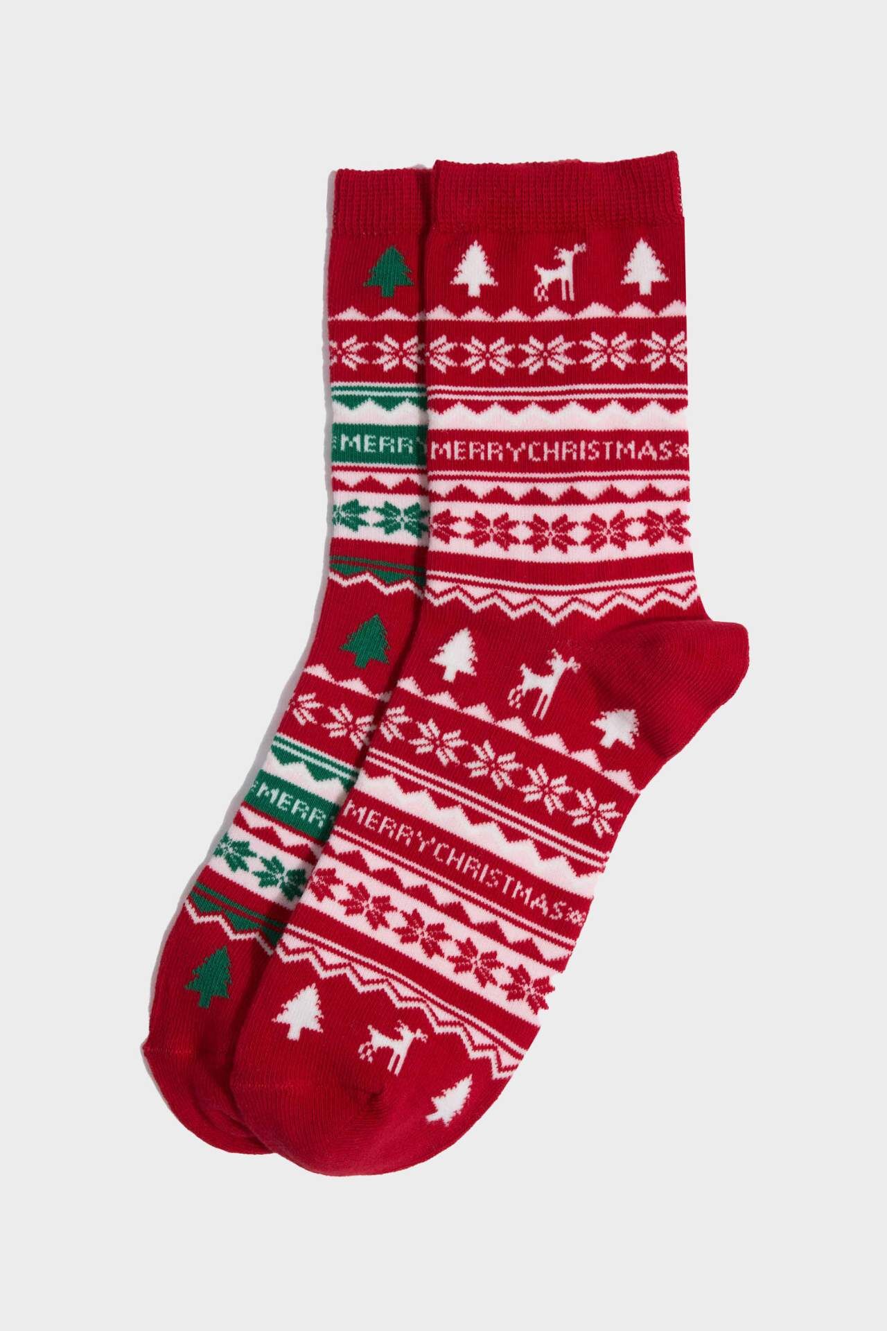 Kadın Yılbaşı Temalı 2'li Pamuklu Uzun Çorap