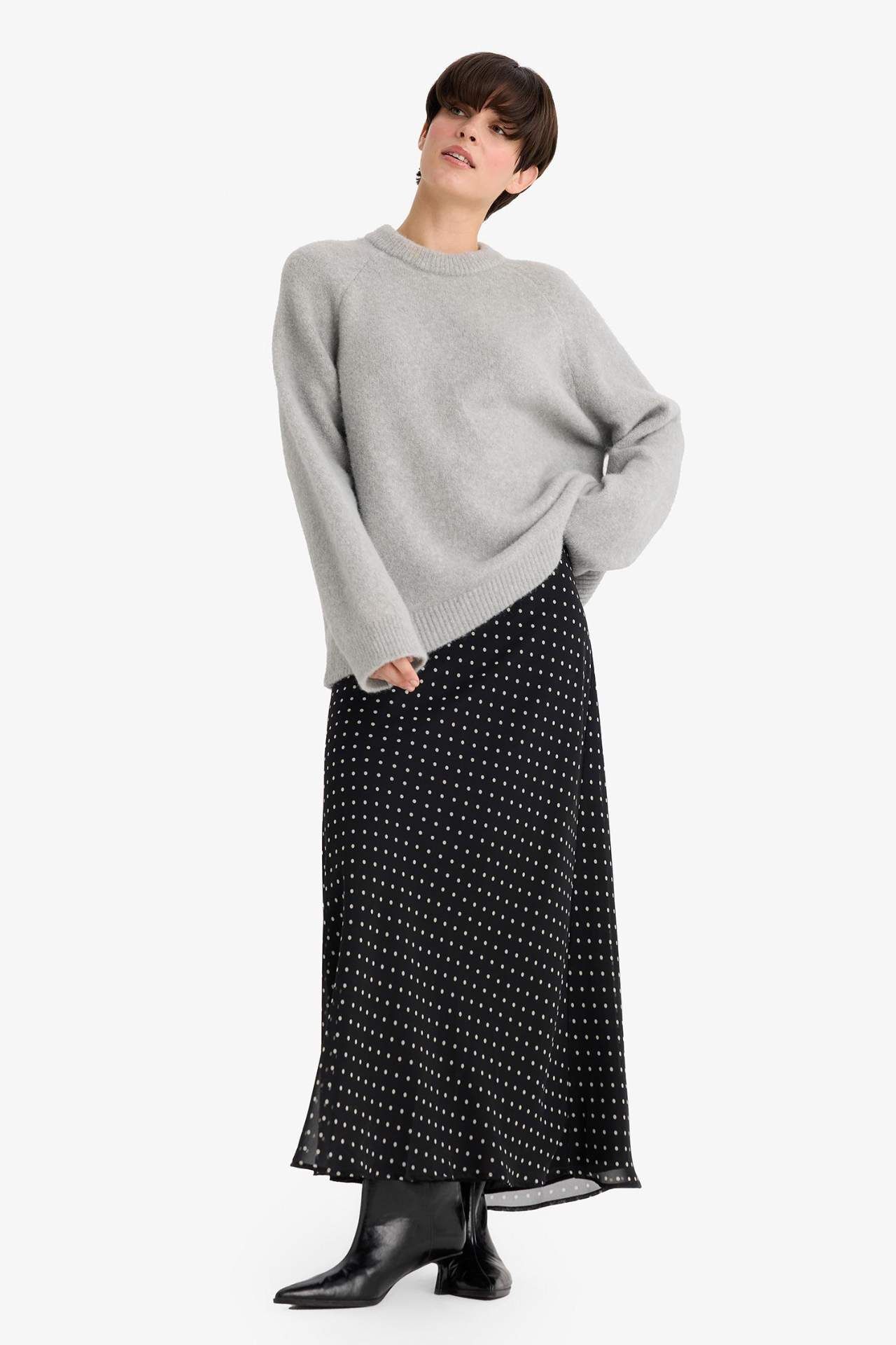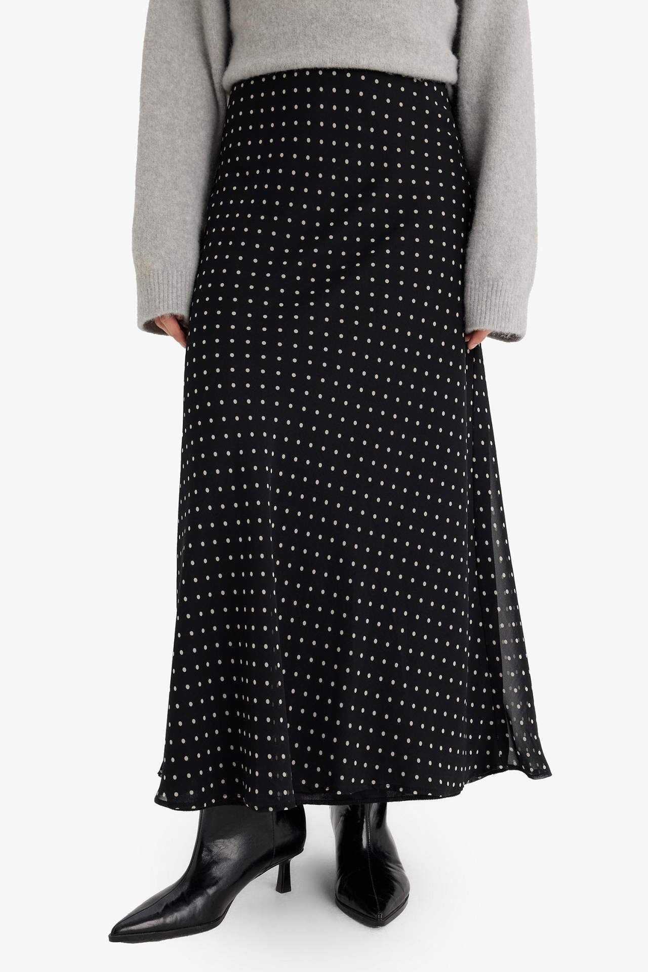 DeFacto Kalem Puantiye Normal Bel Astarlı Şifon Maxi Etek