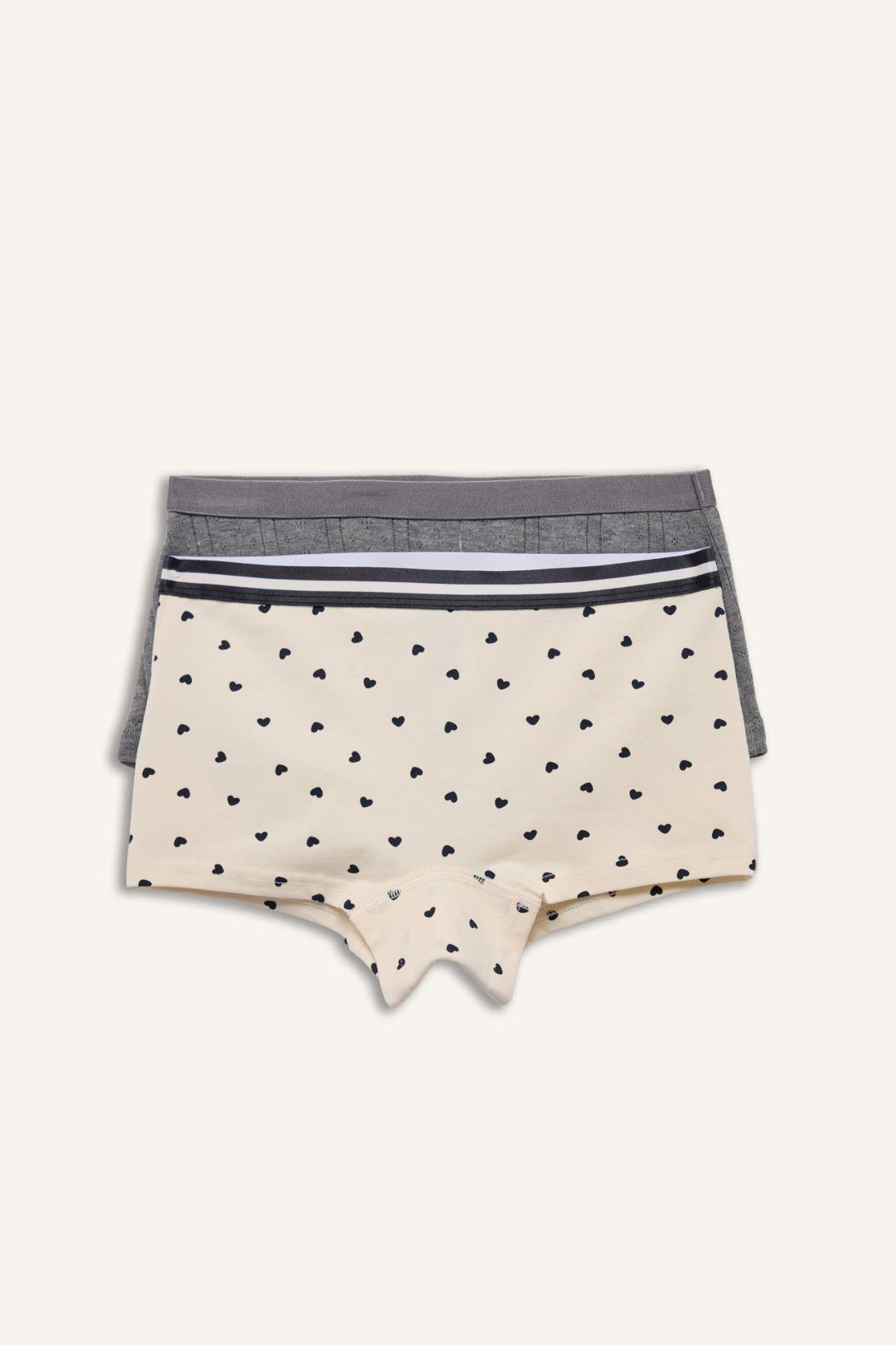 Kalp desenli penye 2’li kız çocuk boxer seti, yumuşak ve nefes alabilen kumaşıyla gün boyu rahatlık sunar. Esnek yapısı sayesinde hareket özgürlüğü sağlar. Pamuk 93%,Elastan 7%,Elastan 30%,Poliester 70%