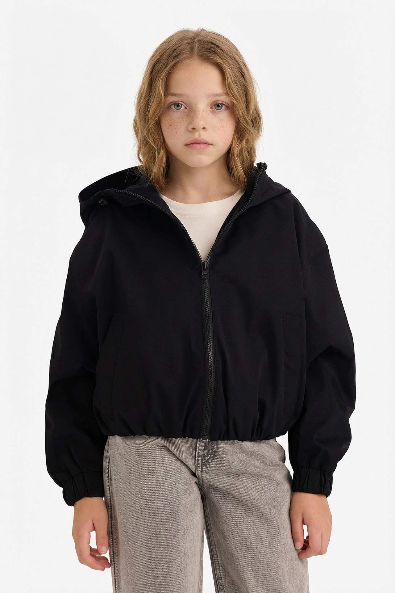 Fermuarlı tasarımı ve kapüşonu, yağışlı havalarda ekstra koruma sağlar. Hafif yapısı sayesinde günlük kullanımda rahatlık sunar. Poliester 100%,Poliester 100% Manken Bedeni: Göğüs: 0 Boy: 1,34 Basen: 0 Bel: 0