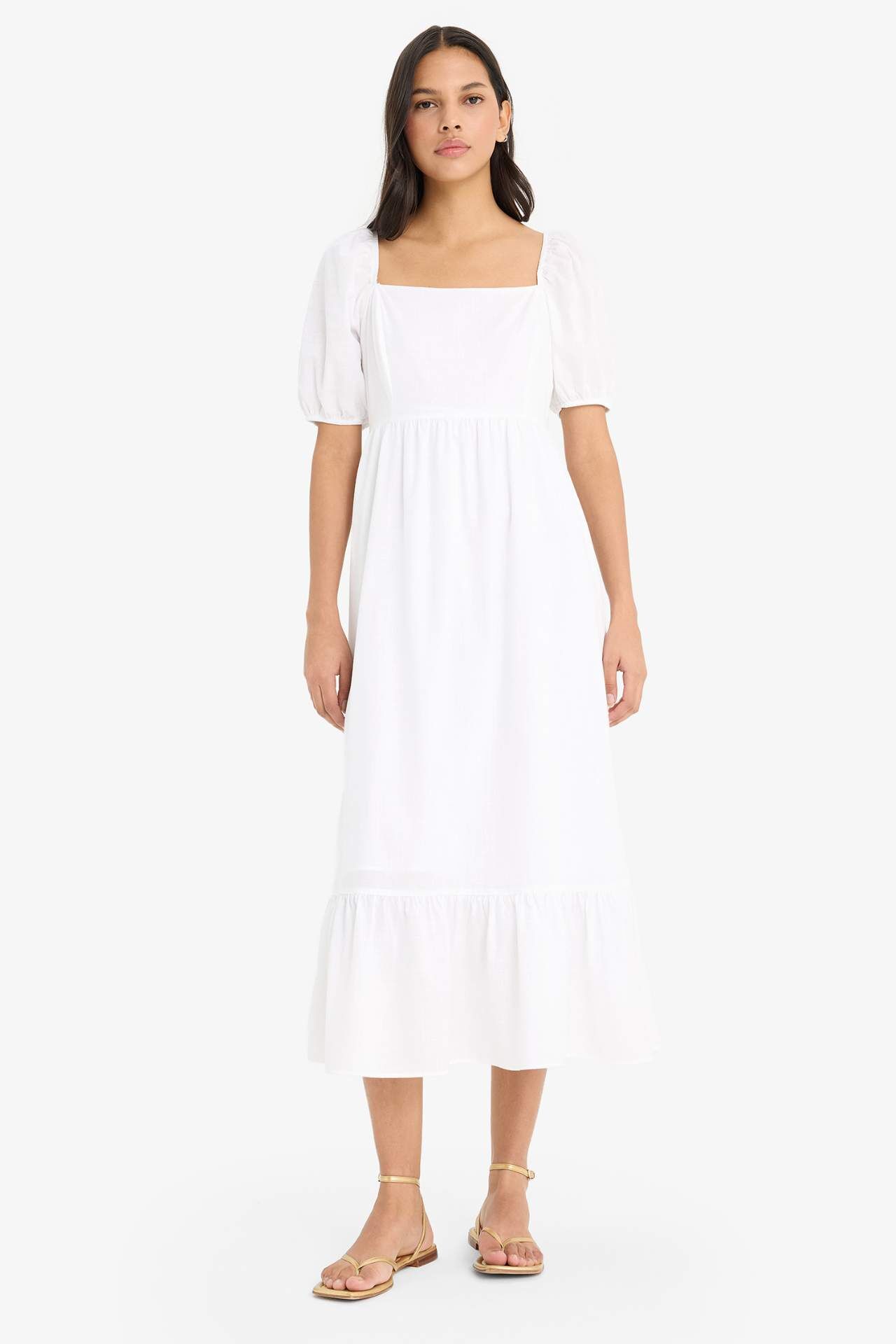 Kare Yaka Poplin Kısa Kollu Maxi Elbise