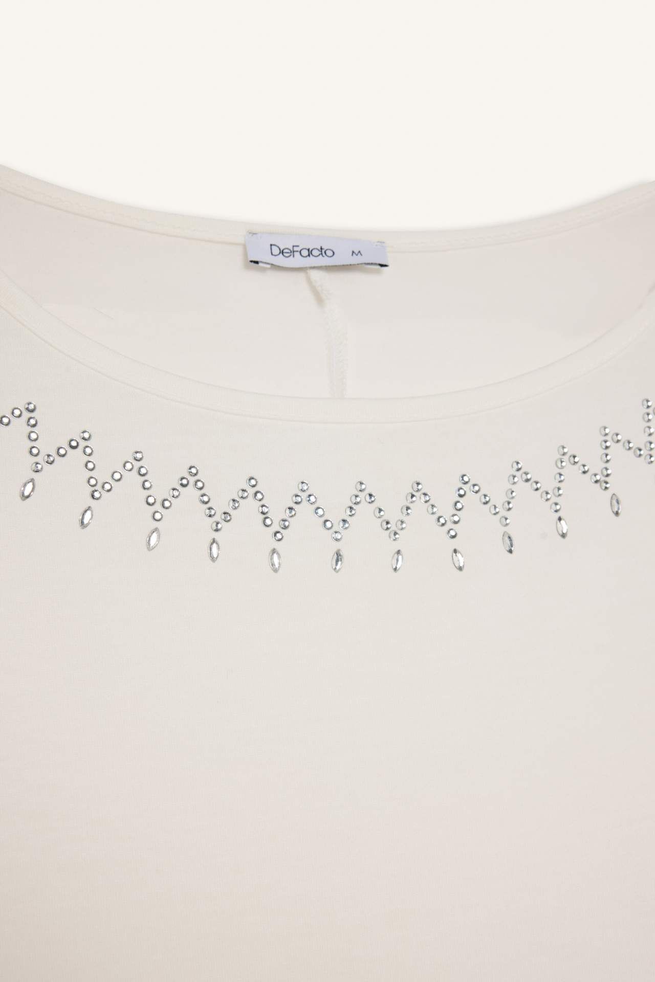 Kayık Yaka Taş Baskılı Kısa Kollu Tişört