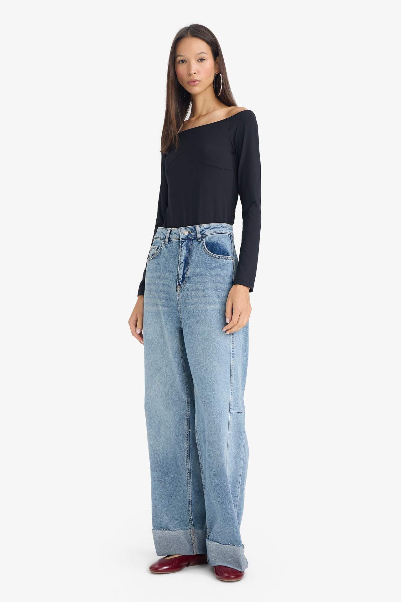 Kayık Yaka Uzun Kollu Body