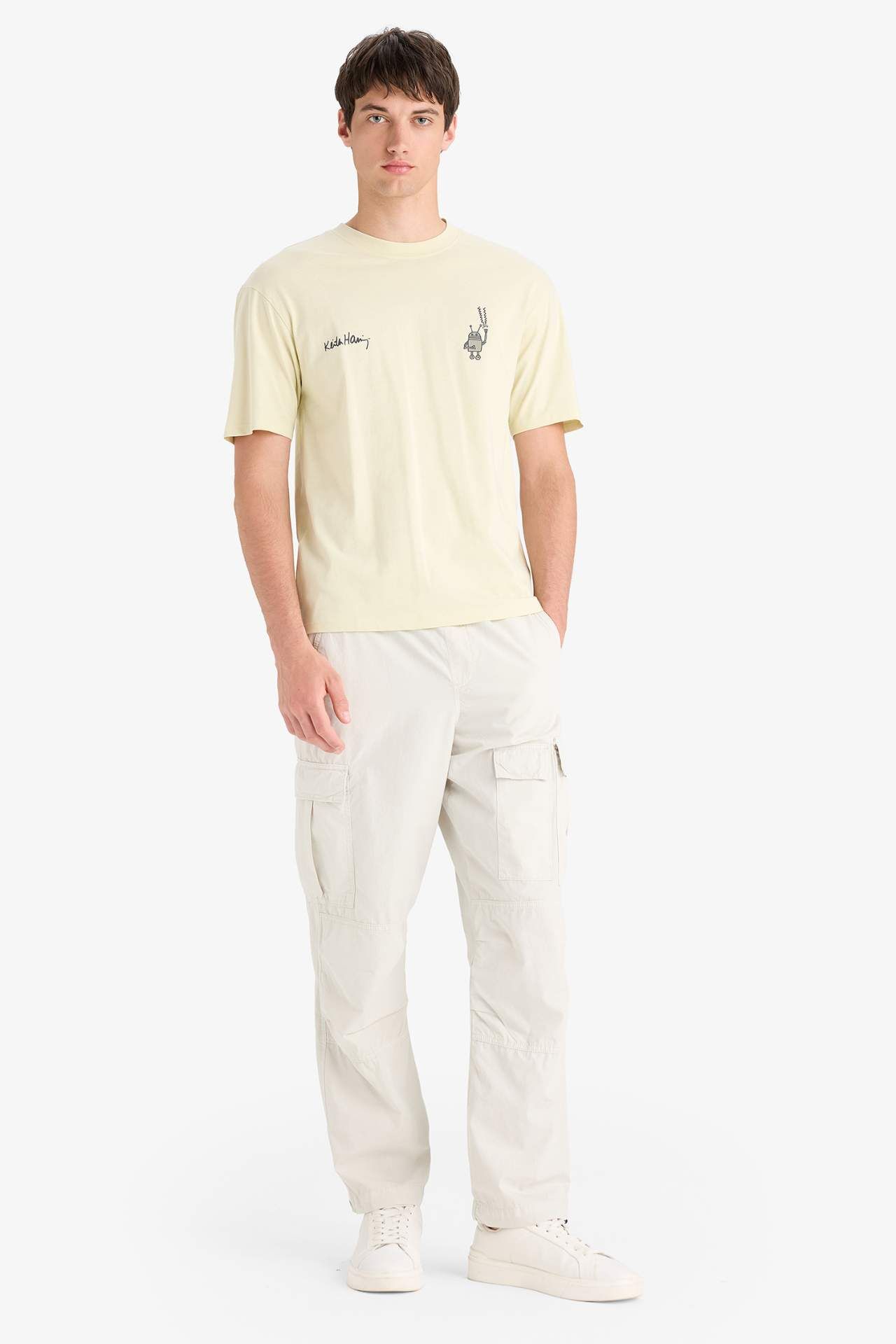 Keith Haring'in ikonik çizgileriyle buluşan bu boxy fit tişört, sanatı günlük stile taşıyor. Rahat kalıbı ve bisiklet yaka tasarımıyla hem konforlu hem de dikkat çekici bir görünüm sunar. Pamuk 100%,Pamuk 100%,Pamuk 100%,Pamuk 100%,Pamuk 100%,Pamuk 100%,Pamuk 100% Manken Bedeni: Göğüs: 93 Boy: 1,9 Basen: 91 Bel: 72