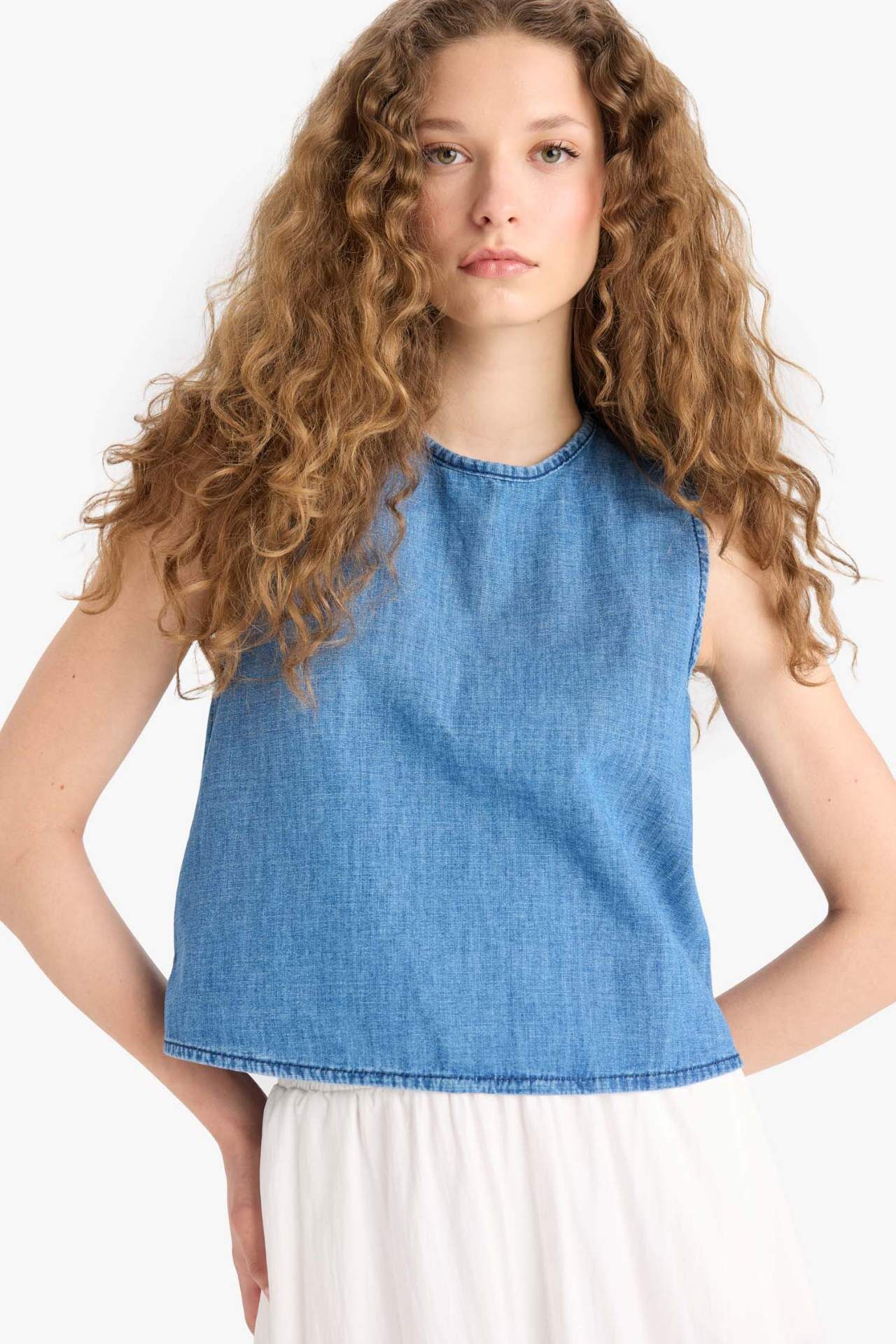 Bisiklet yaka ve keten görünümlü kumaşıyla sade şıklık sunan kolsuz bluz, hafif yapısıyla yaz ayları için idealdir. Zarif tasarımı sayesinde hem günlük hem de şık kombinlerde rahatlıkla kullanılabilir. Pamuk 100%,Pamuk 100%,Pamuk 100%,Pamuk 100%,Pamuk 100%,Pamuk 100% Manken Bedeni: Göğüs: 78 Boy: 1,74 Basen: 89 Bel: 60