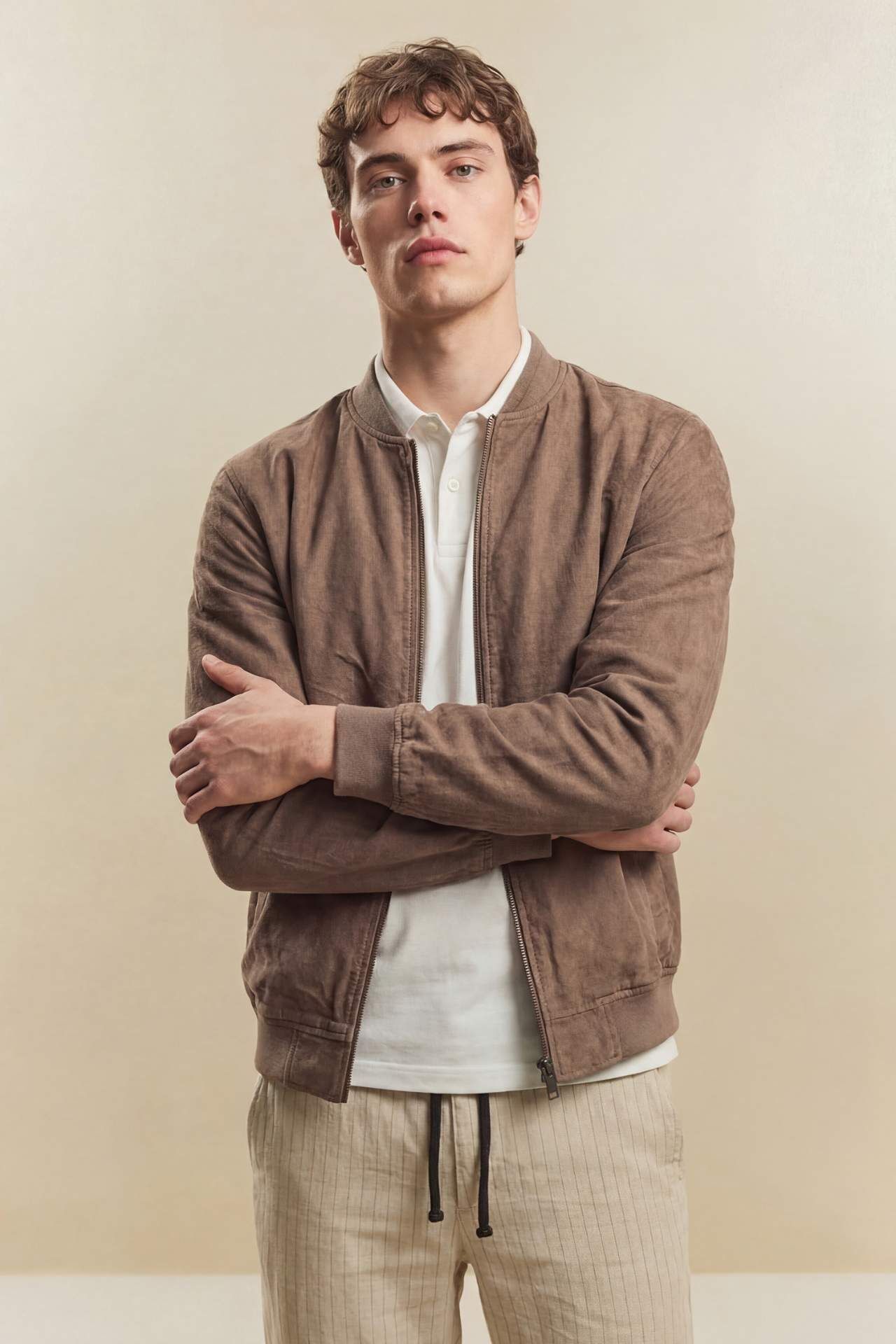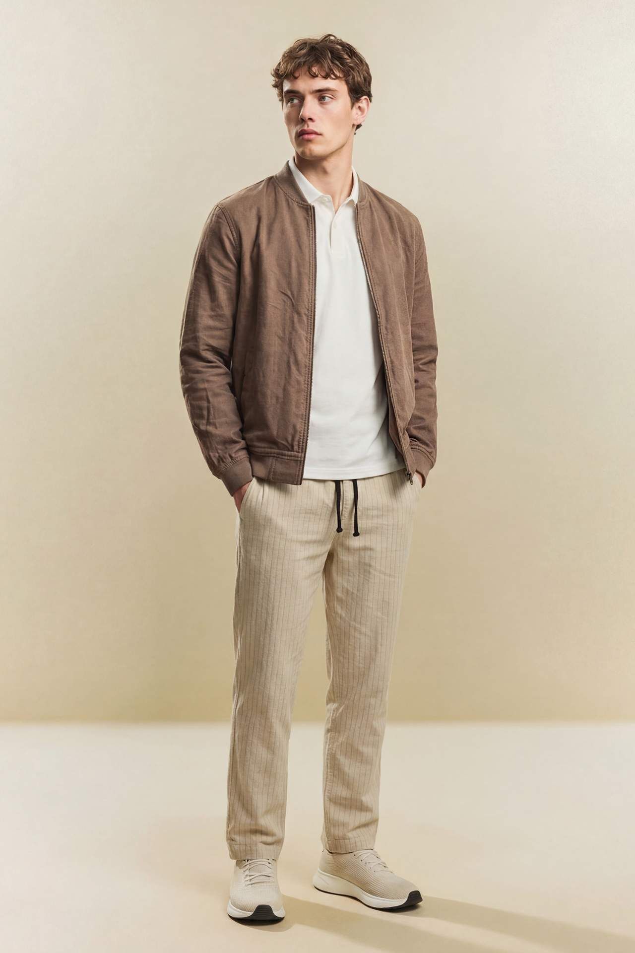 Regular Fit Keten Karışımlı Mont, ketenin doğal ve nefes alabilen dokusunu, modern bir dış giyim formuyla buluşturuyor. Keten karışımlı özel kumaş yapısı, sıcak havalarda bile serinlik sağlarken dayanıklı dokusuyla mevsim geçişlerinin en stil sahibi koruyucusu olur. Standart Regular Fit kesimi, gömlek veya tişörtlerinizin üzerine rahatça giyilebilen konforlu bir alan sunar. Tam boy fermuarlı kapaması ve minimalist tasarımıyla hem şık hem de çabasız bir görünüm vadederken, ketenin kendine has doğal dokusu stilinize sofistike bir derinlik katar. Poliester 100%,Viskoz 88%,Keten 12% Manken Bedeni: Göğüs: 100 Boy: 1,87 Basen: 98 Bel: 78
