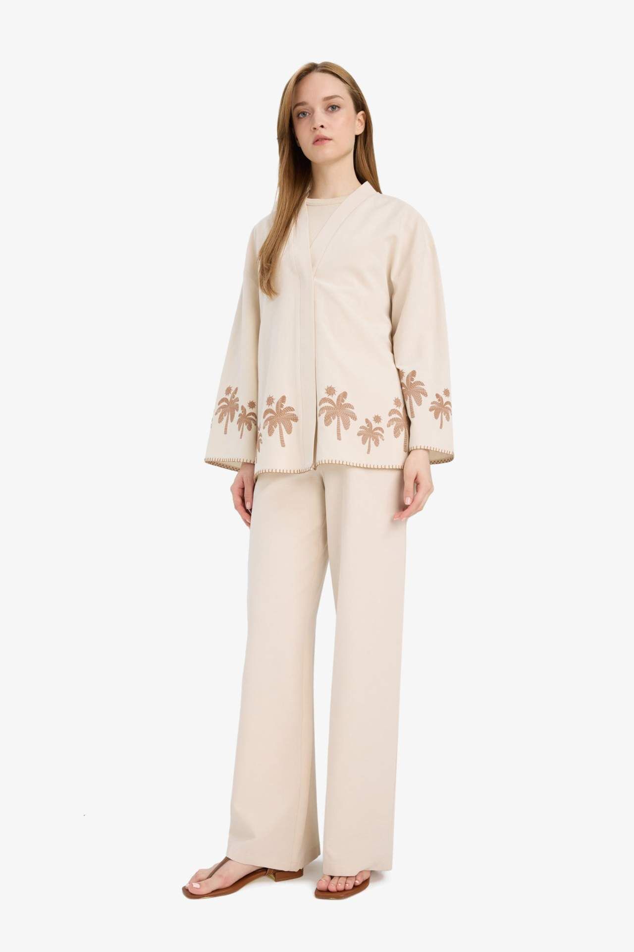DeFacto Keten Karışımlı Wide Leg Geniş Paça Flamlı Pantolon F1395AX25SMER42