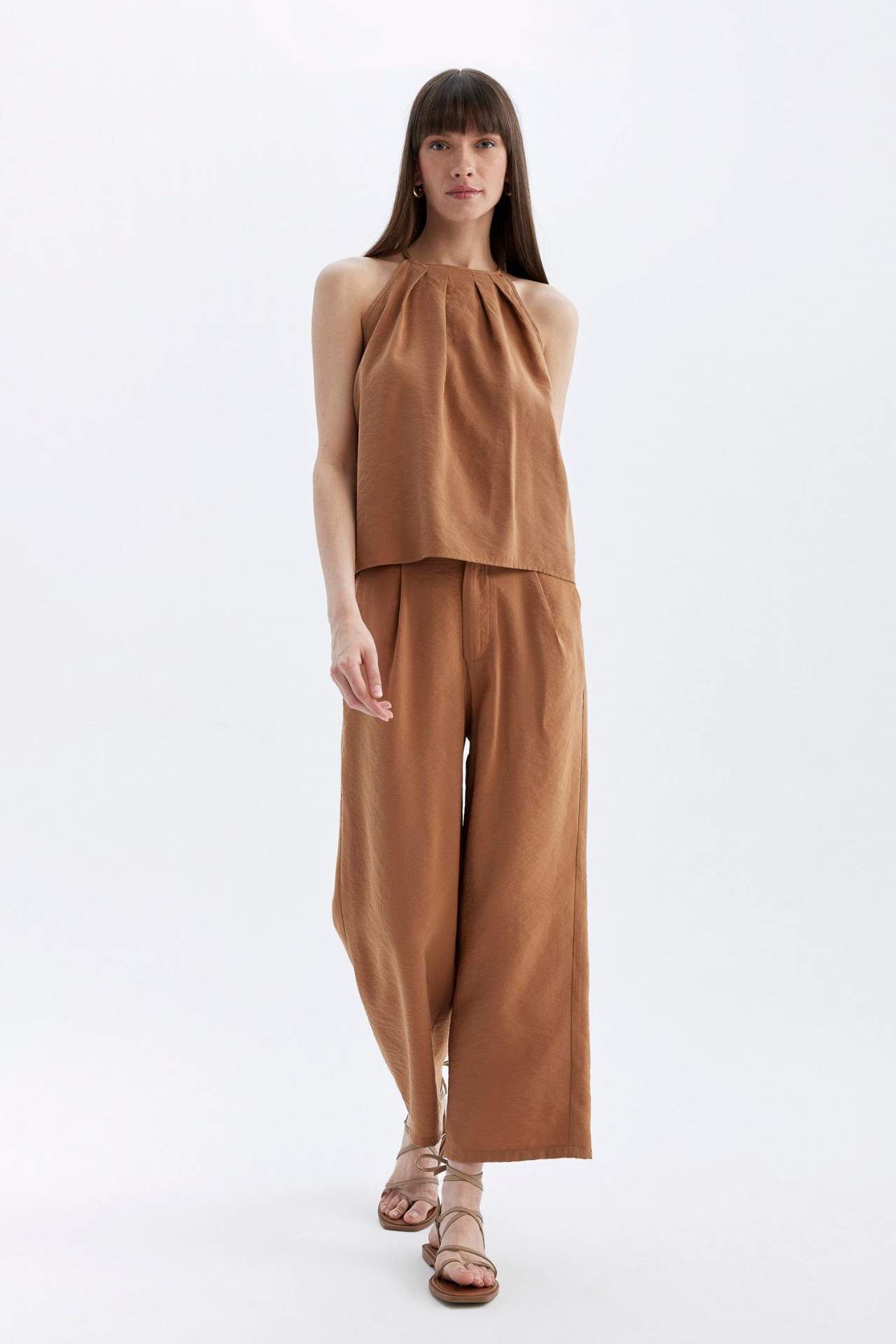 DeFacto Kısa Geniş Paça Cepli Yüksek Bel Geniş Paça Crop Modal Pantolon