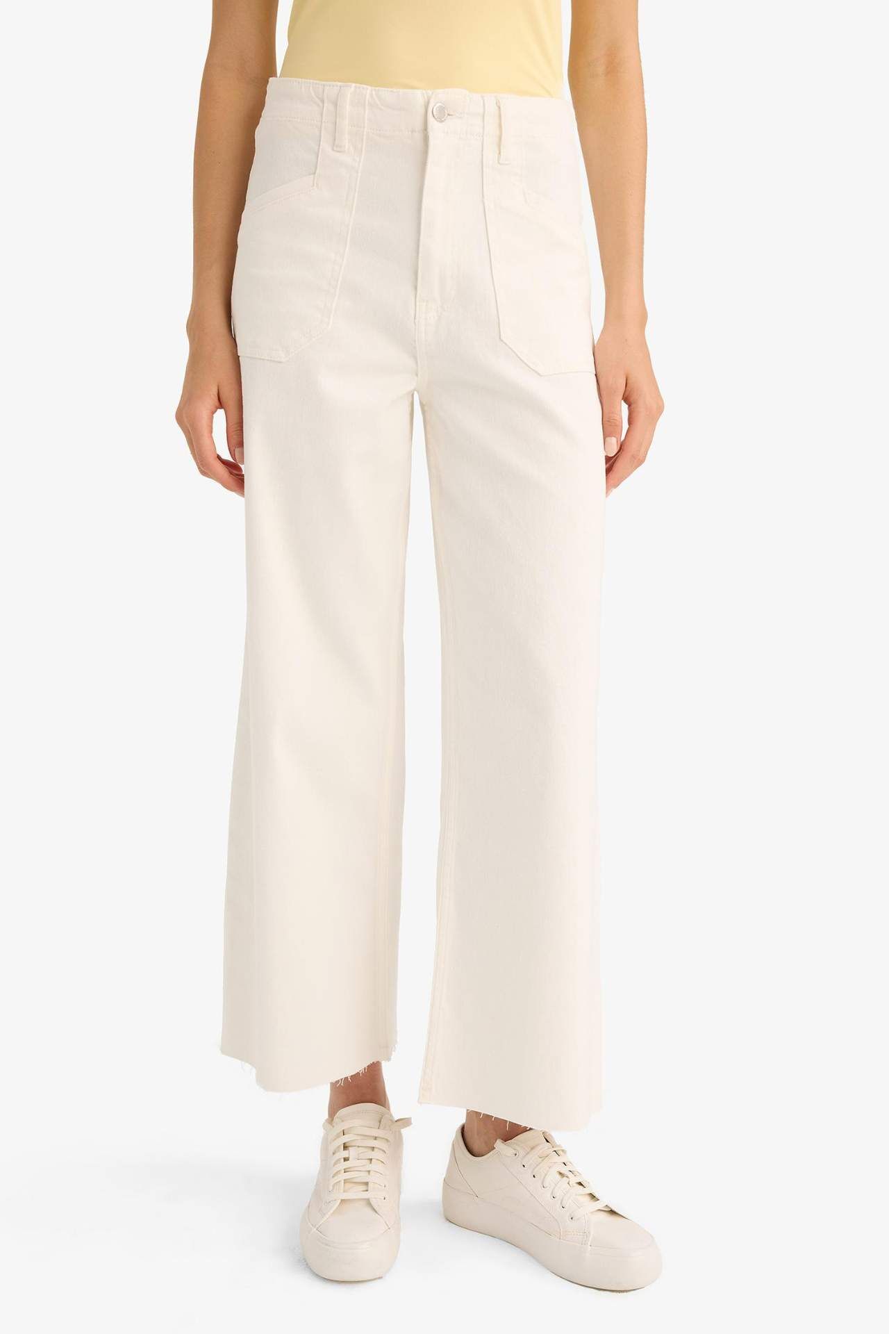 DeFacto Kısa Geniş Paça Yüksek Bel Kesik Uç Paça Bilek Boy Jean Pantolon