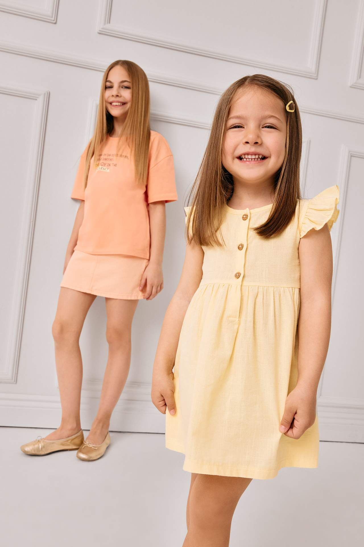 DeFacto Kız Bebek Basic Düz Kısa Kollu Flamlı Poplin Elbise