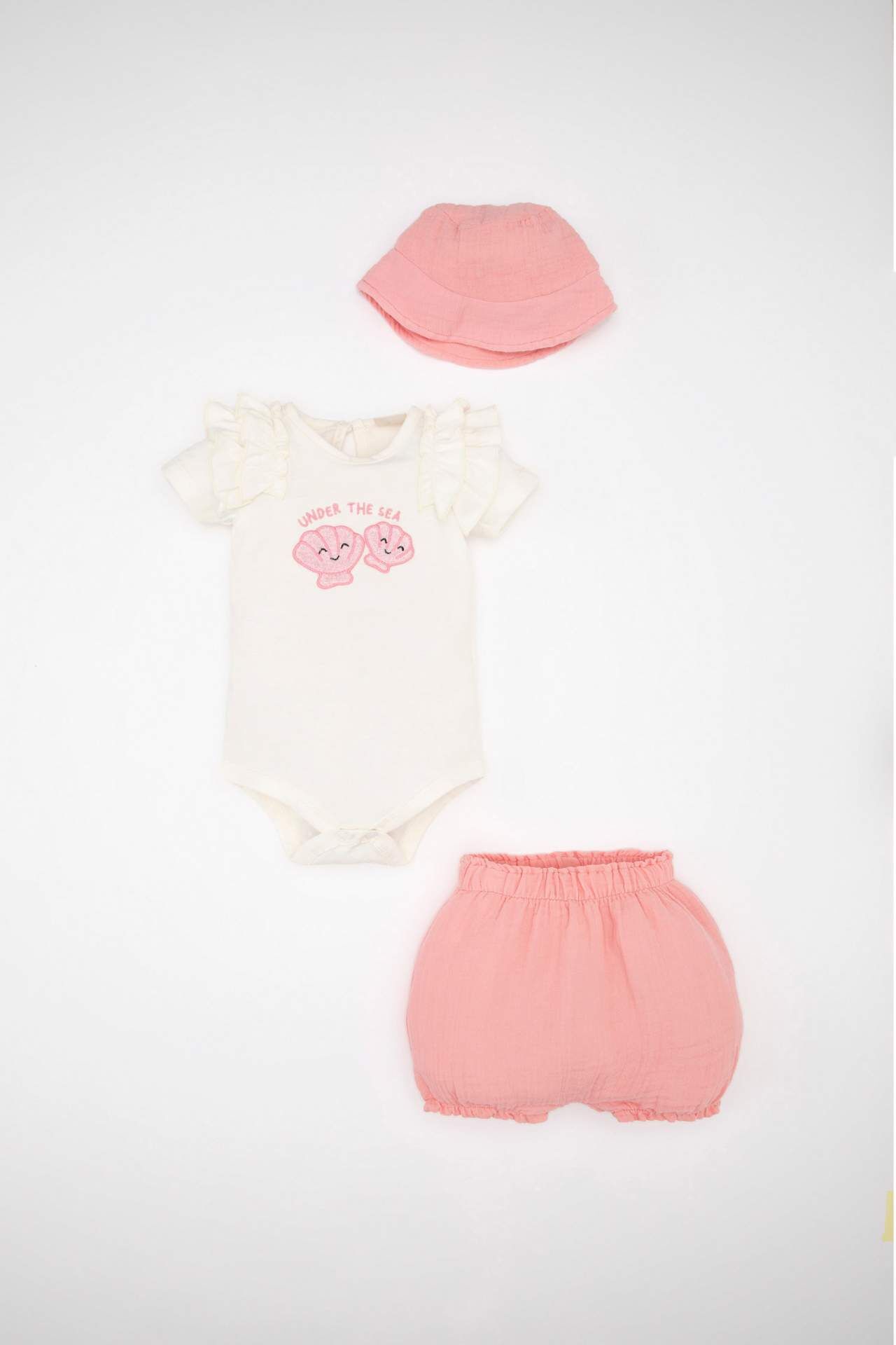 DeFacto Kız Bebek Baskılı Kısa Kollu Çıtçıtlı Body Şort Şapka Müslin 3'lü Takım