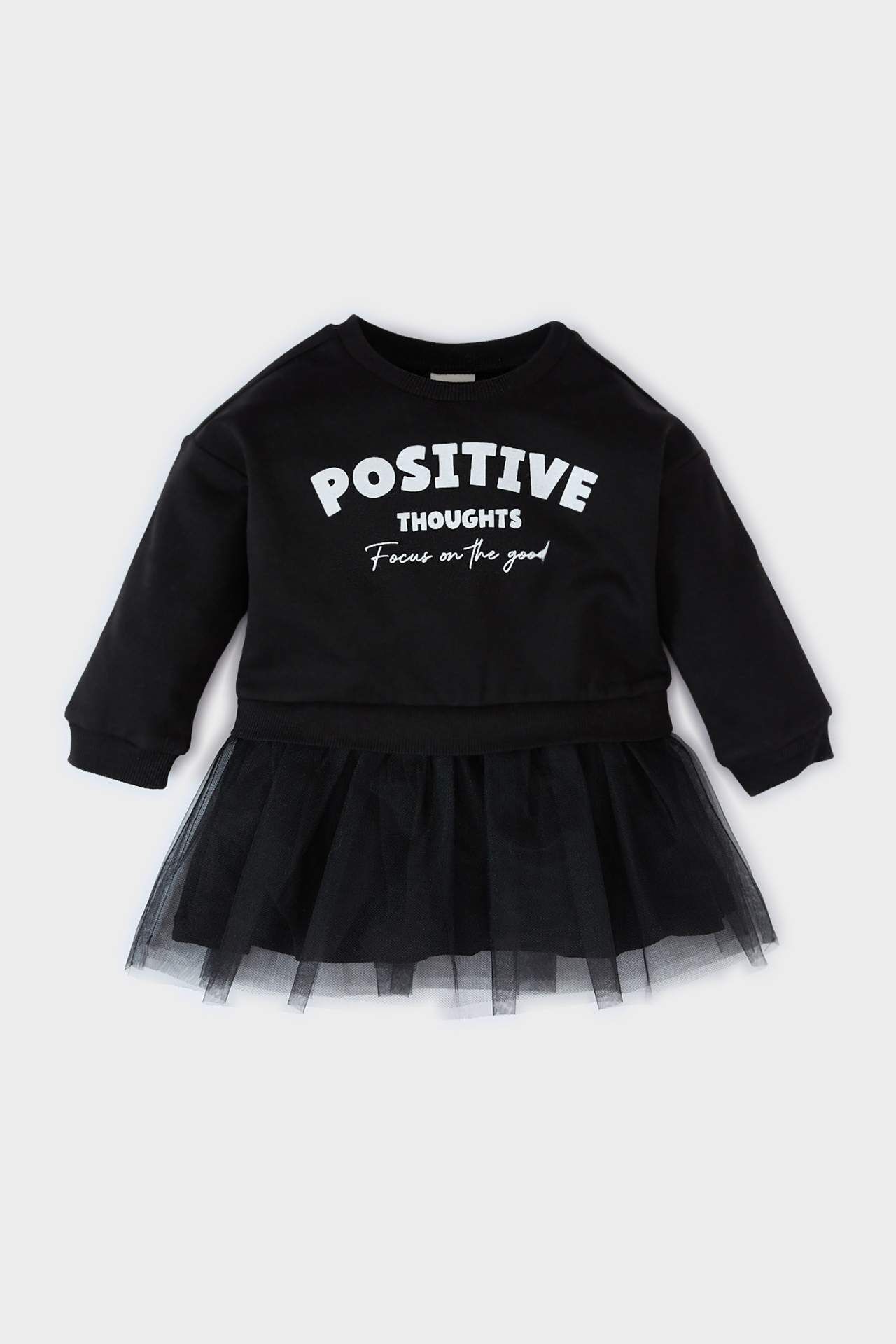 DeFacto Kız Bebek Baskılı Uzun Kollu Tütü Etekli Sweatshirt Elbise
