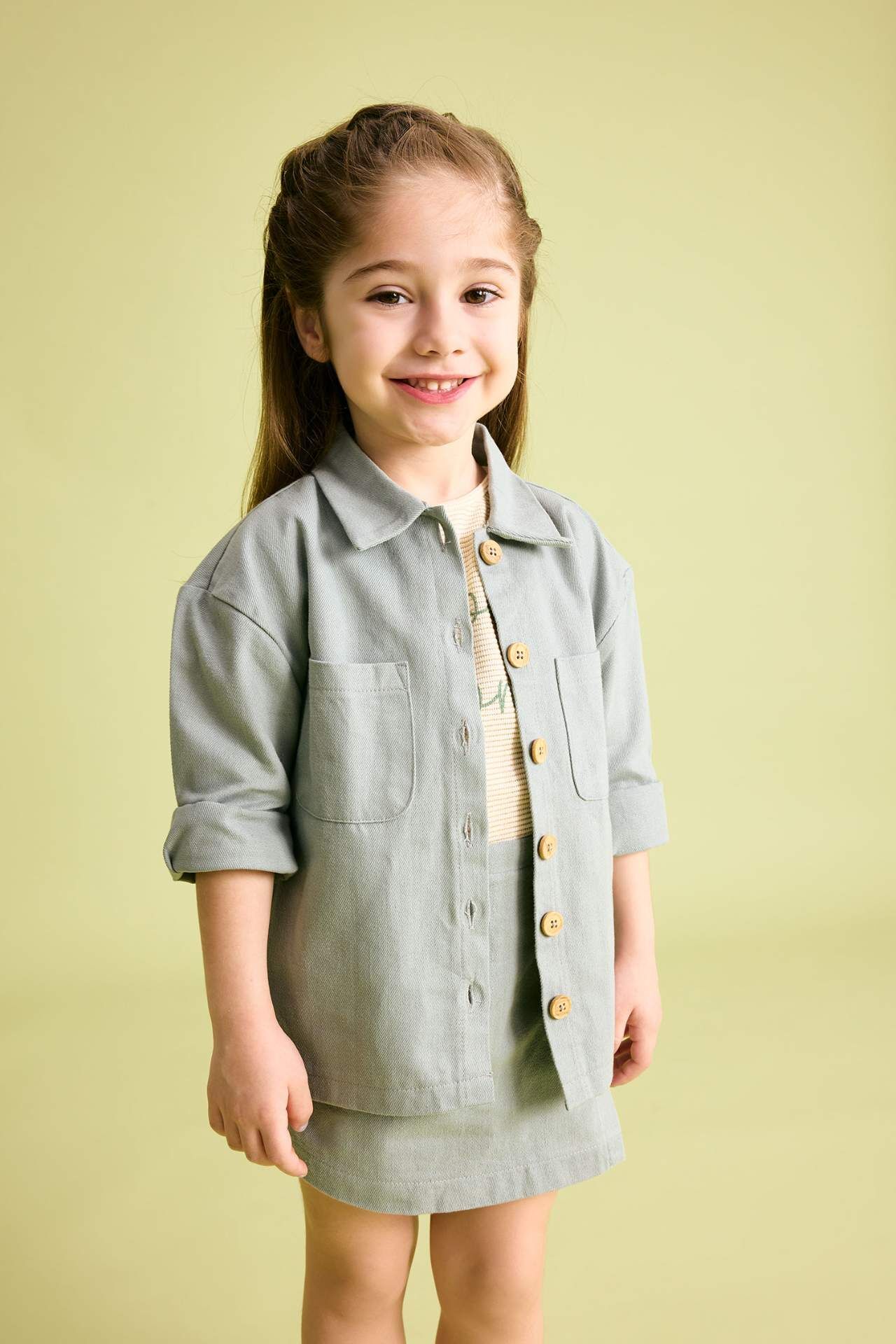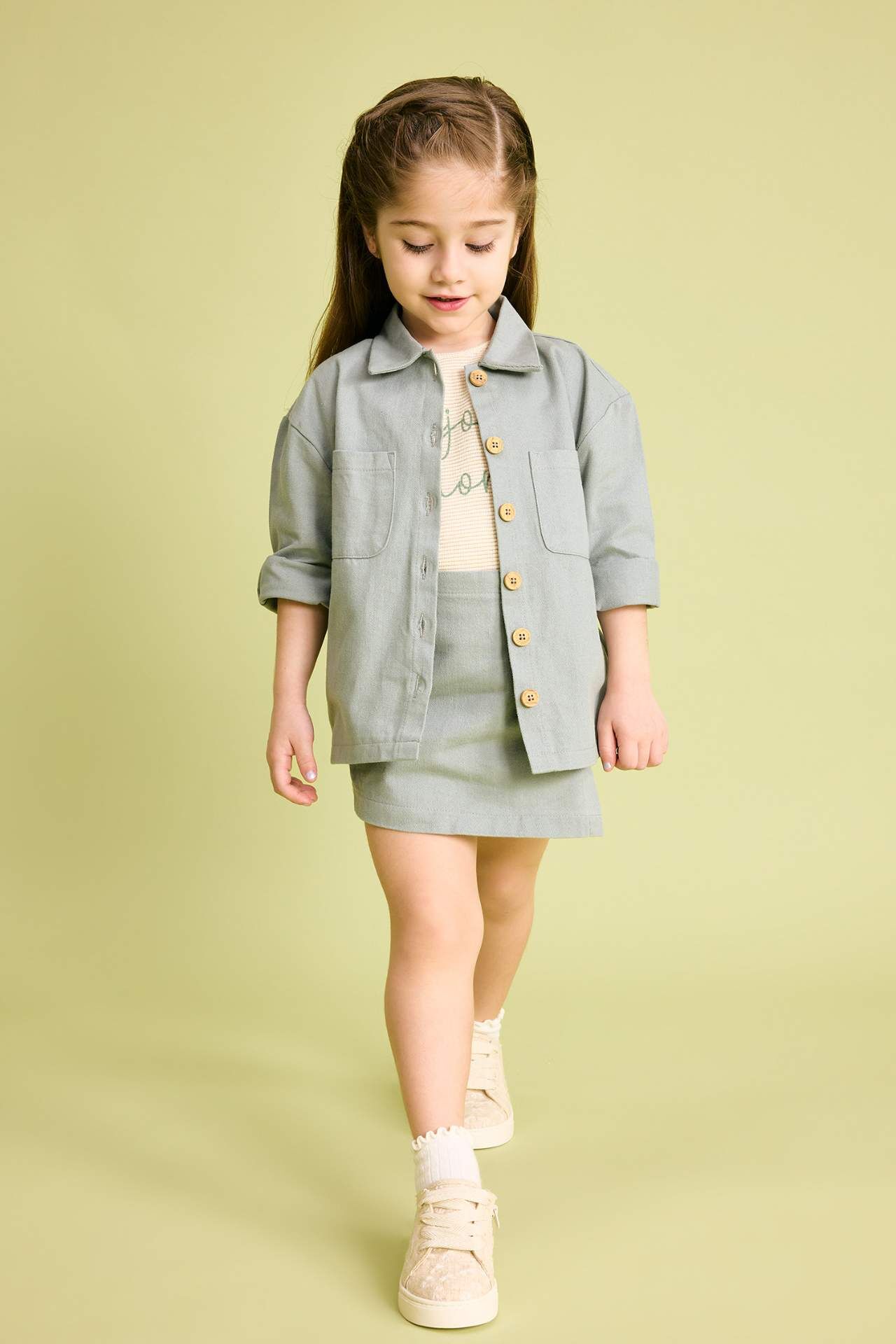 DeFacto Kız Bebek Gömlek Yaka Gabardin Uzun Kollu Gömlek
