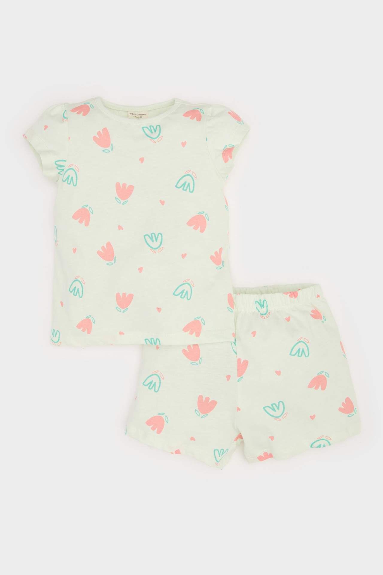 DeFacto Kız Bebek Pijama Takımı Çiçekli Kısa Kollu Penye Üst Beli Lastikli Şort
