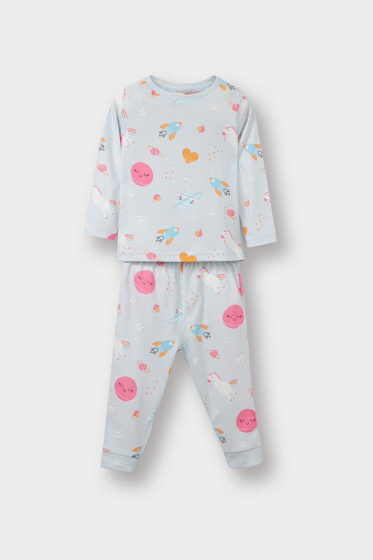 DeFacto Kız Bebek Pijama Takımı Uzay Baskılı Uzun Kollu Penye Üst Uzun Alt