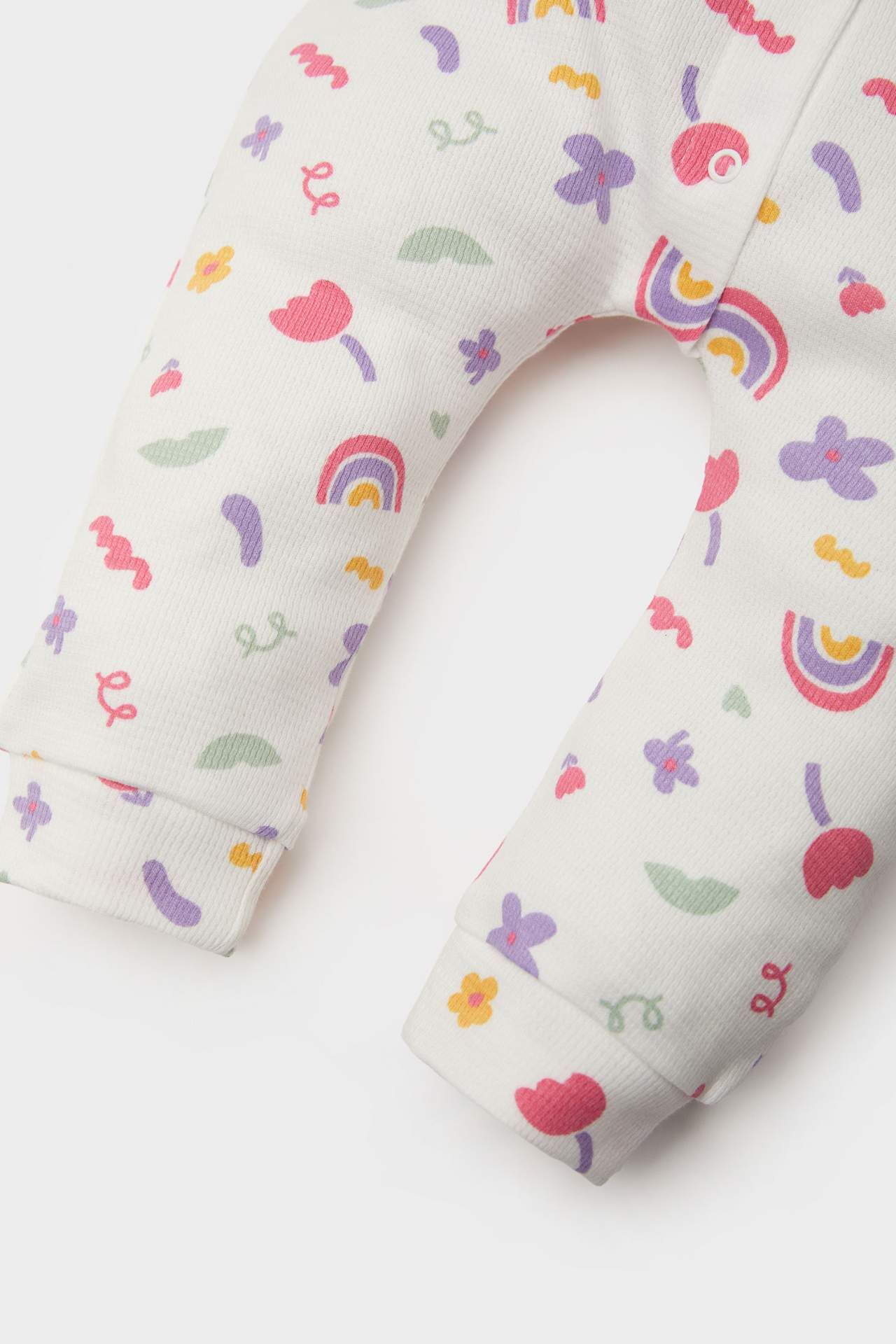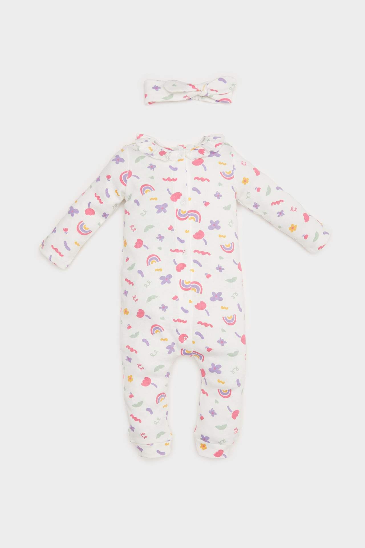 DeFacto Kız Bebek Yeni Doğan 2'li Tulum Gökkuşağı Baskılı Waffle Uzun Kollu Tulum Saç Bandı