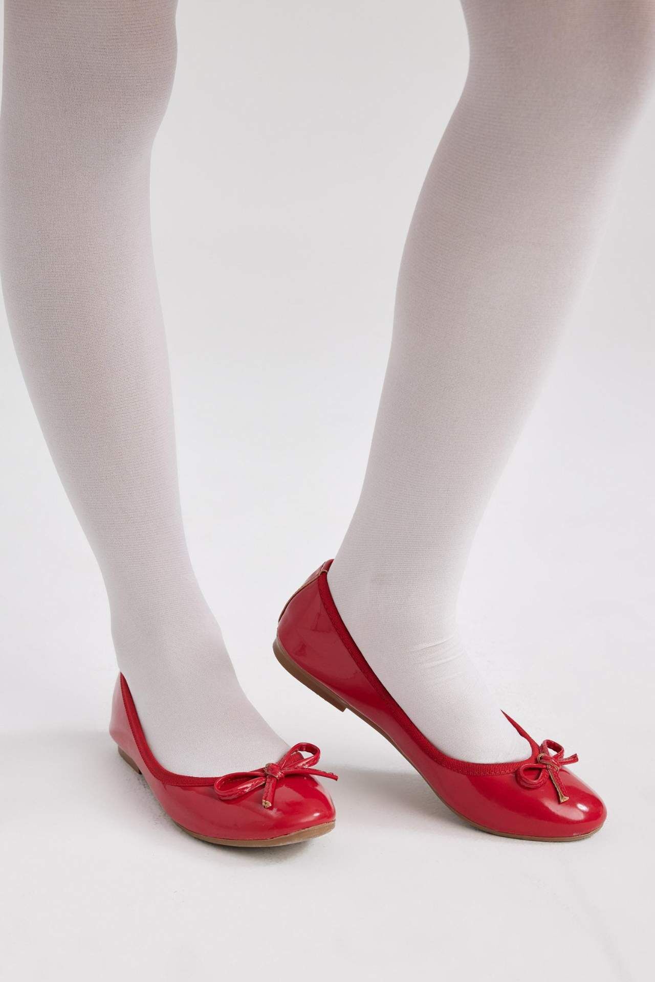 Kız Çocuk 23 Nisan Çocuk Bayramı Düz Taban Kırmızı Suni Deri Babet