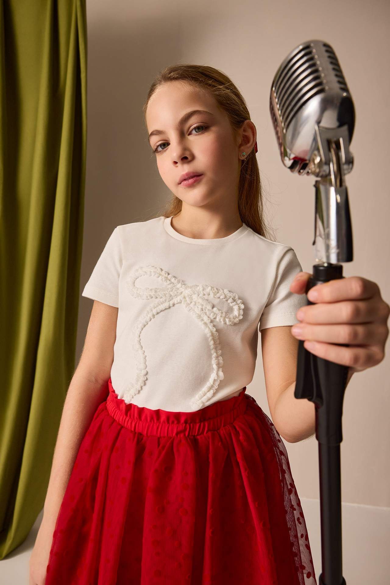 DeFacto Kız Çocuk 23 Nisan Çocuk Bayramı Slim Fit Dar Kesim Bisiklet Yaka Slogan Baskılı Kısa Kollu Tişört