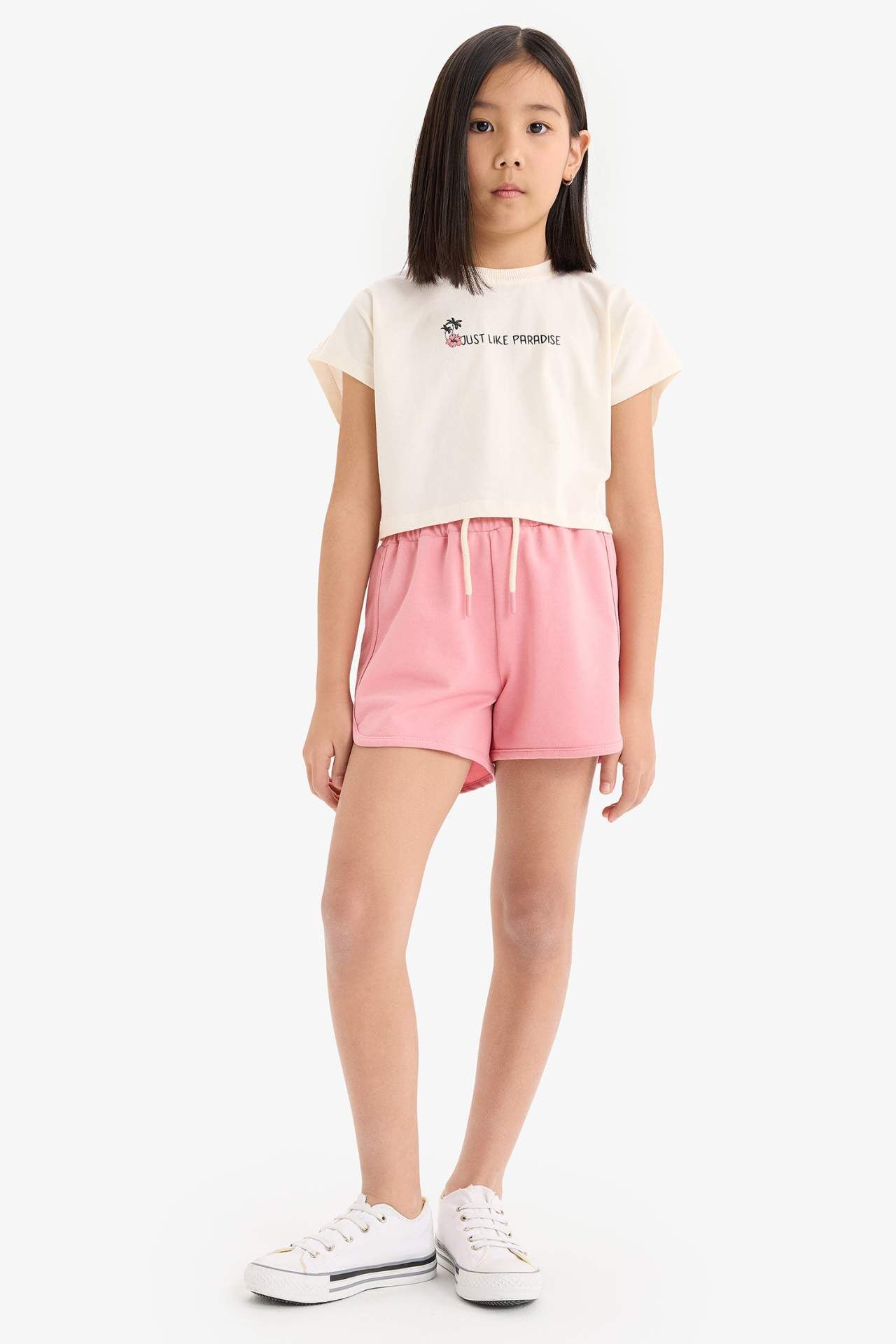 DeFacto Kız Çocuk 2'li Takım Baskılı Kısa Kollu Tişört Beli Lastikli Şort