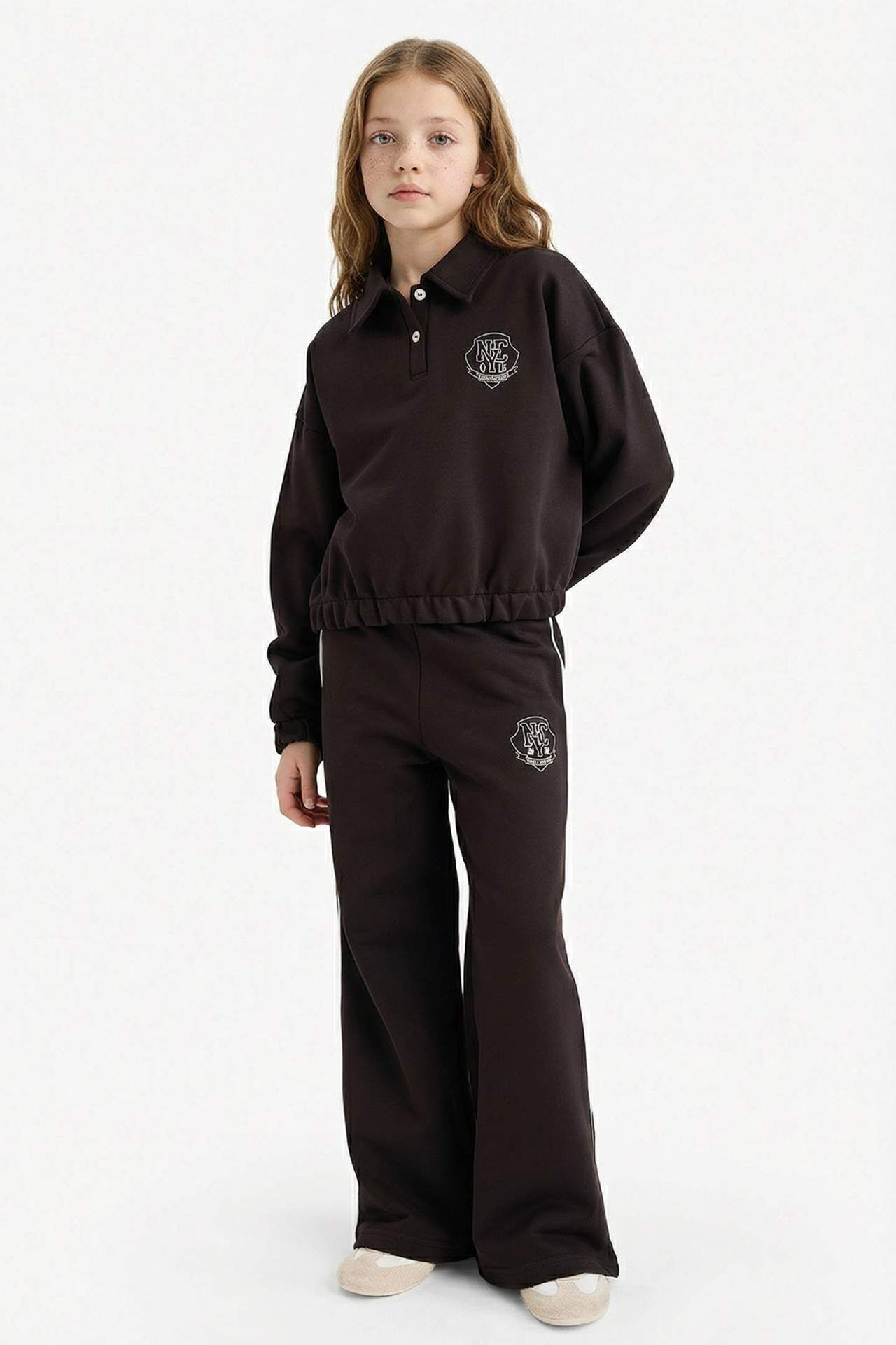 Kız Çocuk 2'li Takım Baskılı Sweatshirt Eşofman Altı