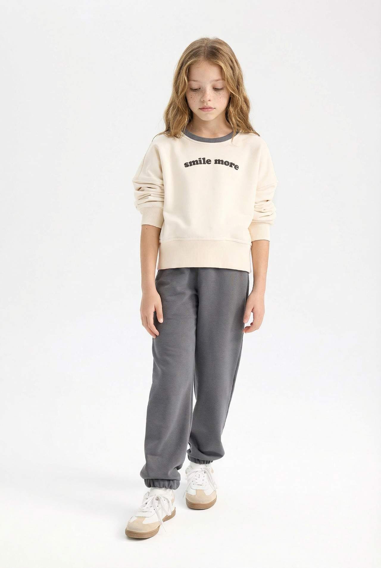 DeFacto Kız Çocuk 2'li Takım Bisiklet Yaka Baskılı Sweatshirt Beli Lastikli Eşofman Altı D0727A824AUER136