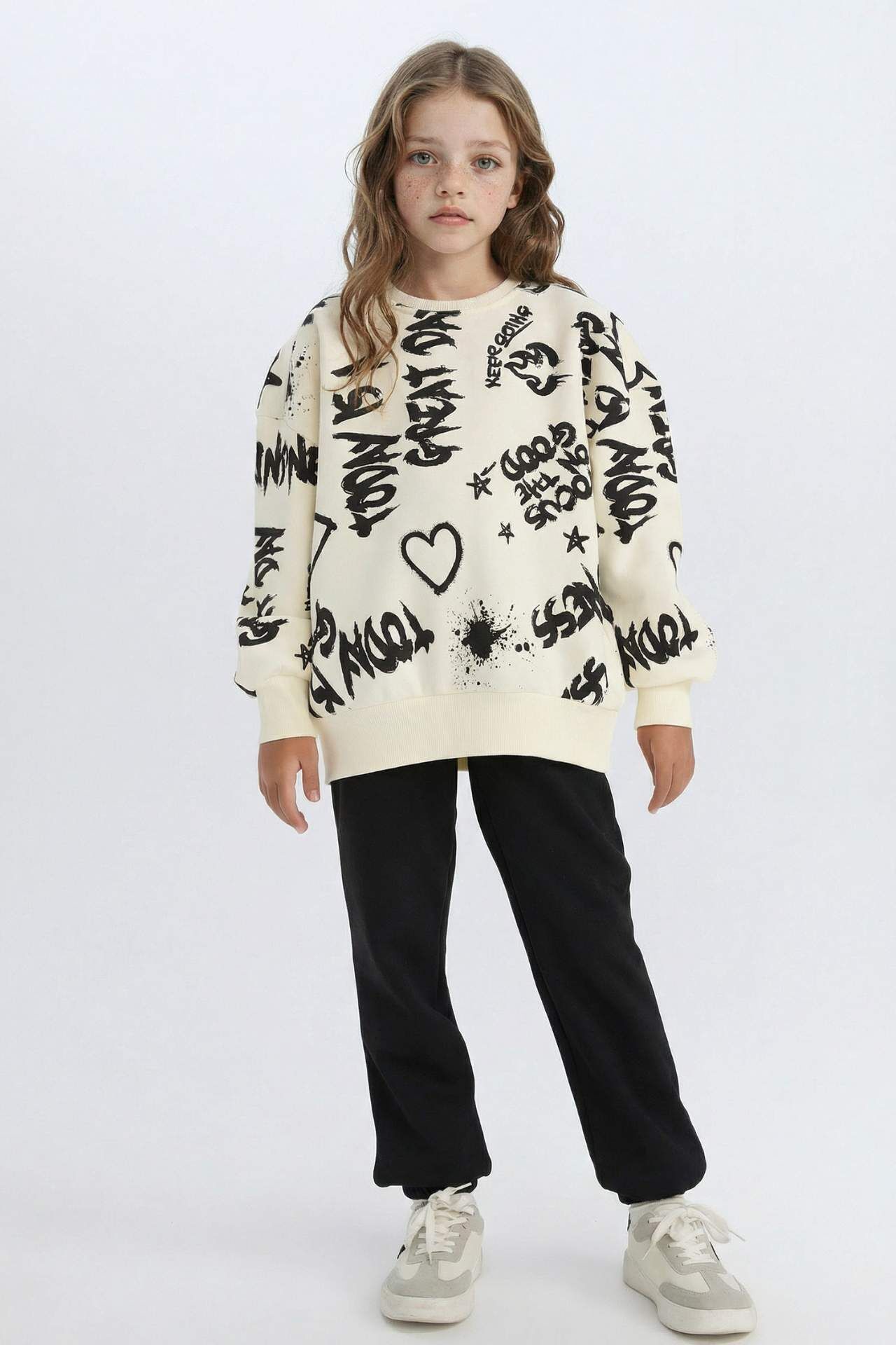 DeFacto Kız Çocuk 2'li Takım Desenli Kalın Bisiklet Yaka Sweatshirt Beli Lastikli Eşofman Altı