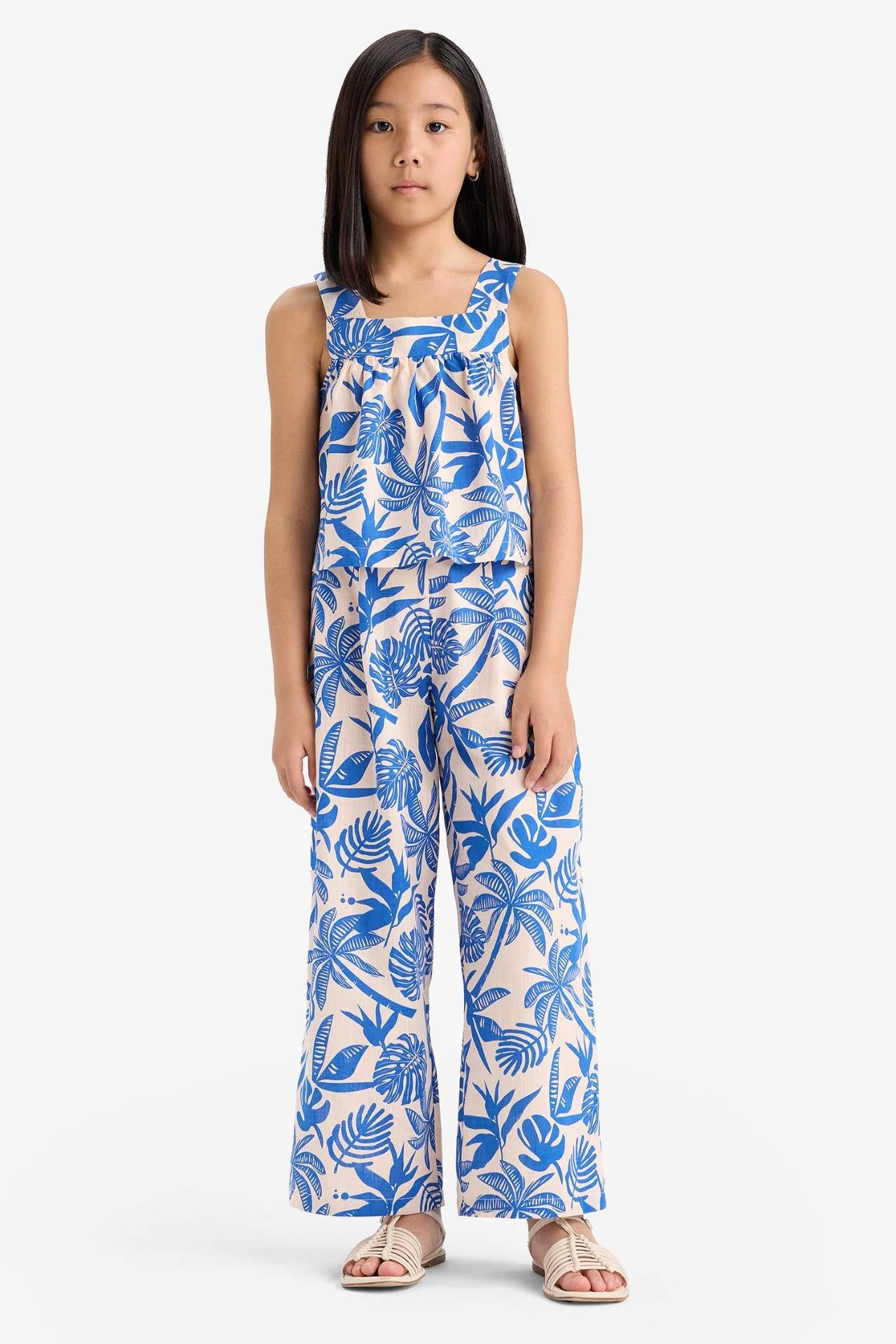 DeFacto Kız Çocuk 2'li Takım Keten Görünümlü Desenli Kolsuz Bluz Pantolon