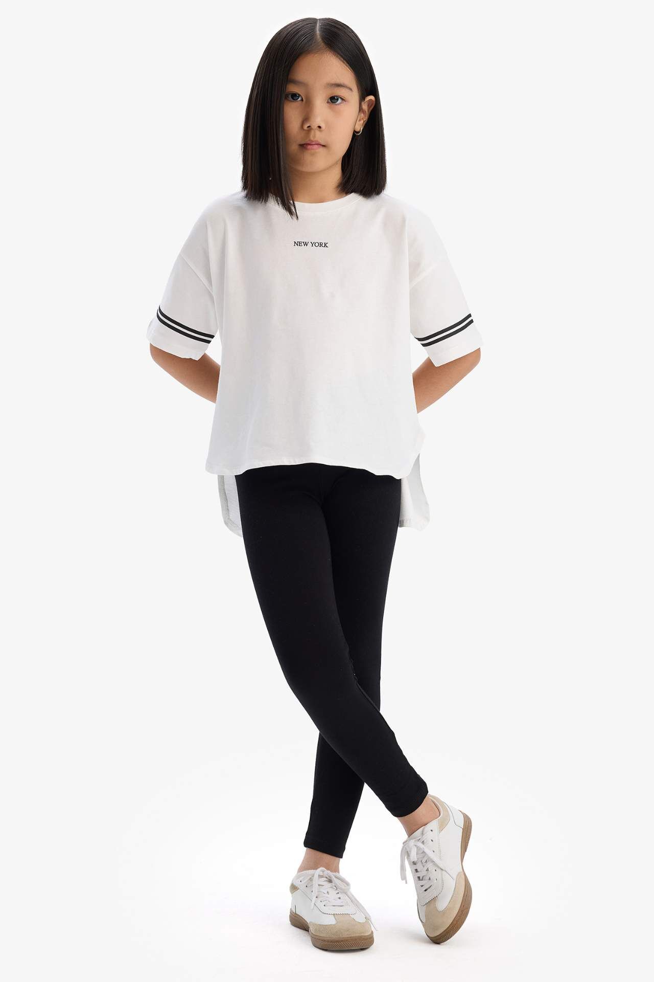 DeFacto Kız Çocuk 2'li Takım Kısa Kollu Baskılı Tişört Tayt