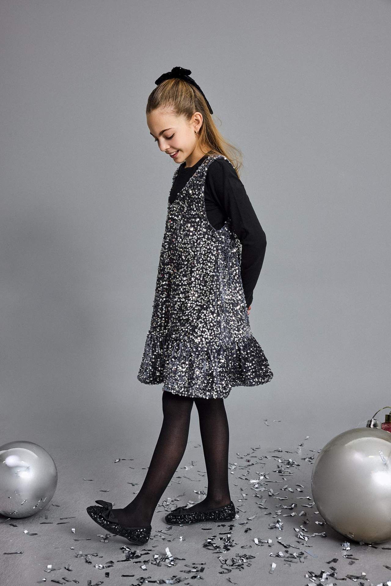 Kız Çocuk 2'li Takım Uzun Kollu Tişört Payetli Kolsuz Elbise