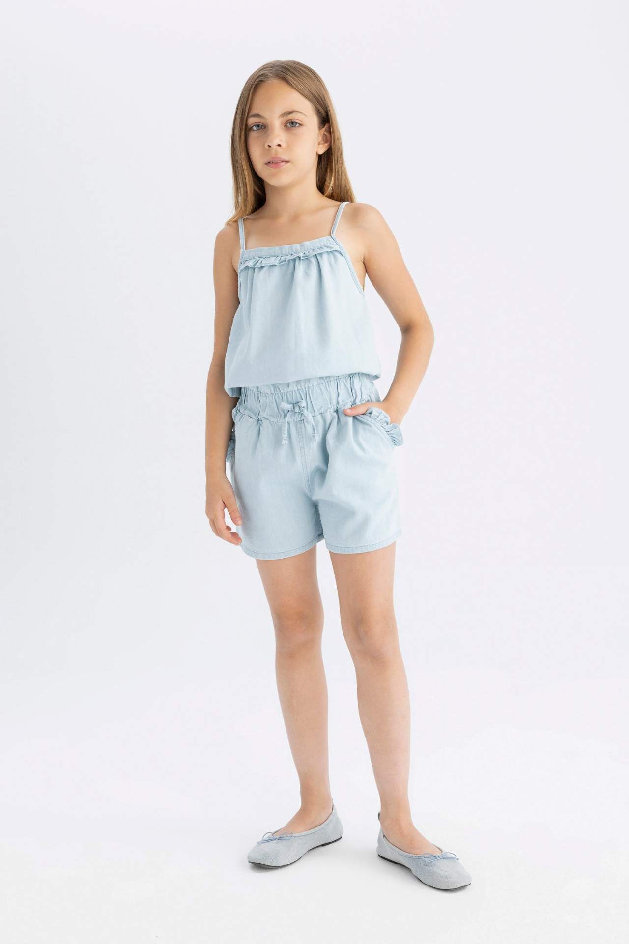 Şık ve rahat Kız Çocuk Askılı Tulum, miniklerin enerjisine eşlik ediyor. Yüksek kaliteli kumaşı ve şık tasarımıyla her anı özel kılıyor. Şimdi keşfedin ve minik prensesiniz için hemen sipariş verin! Pamuk 100%,Pamuk 100% Manken Bedeni: Göğüs: 0 Boy: 1,36 Basen: 0 Bel: 0
