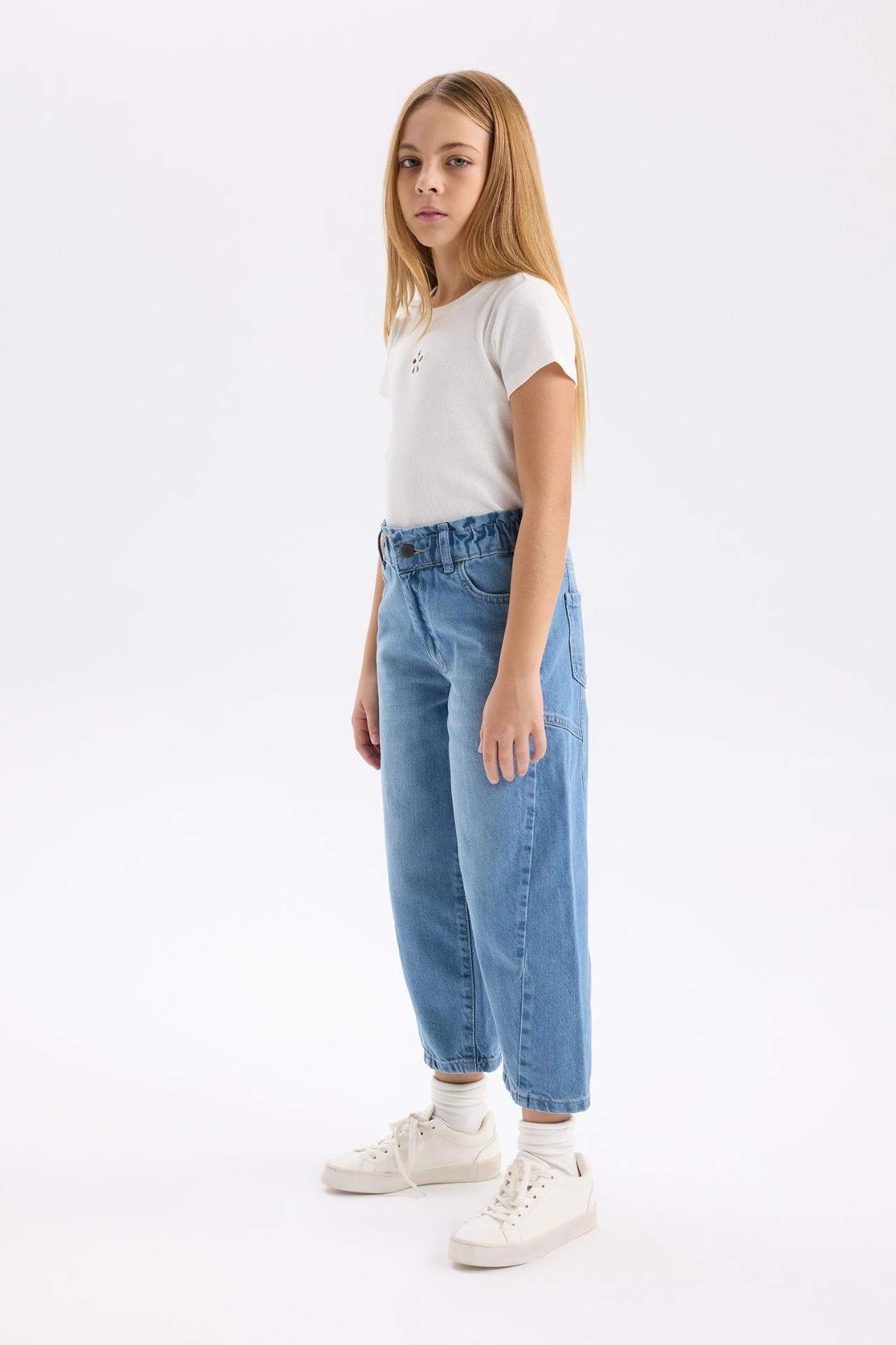 Kız Çocuk Barrel Fit Jogger Paça Bilek Boy Jean Pantolon