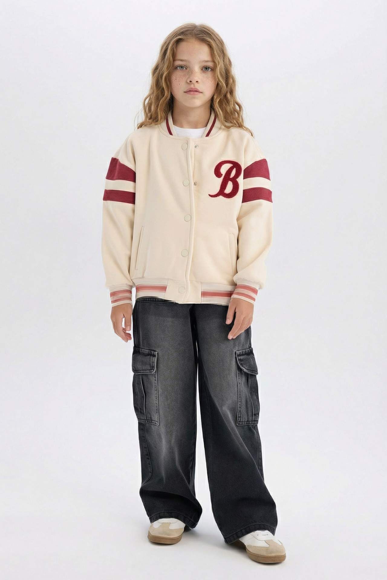 DeFacto Kız Çocuk Baskılı Bisiklet Yaka Kalın İçi Yumuşak Tüylü Hırka