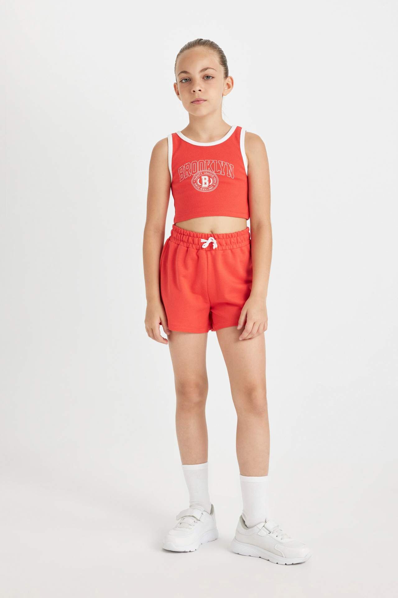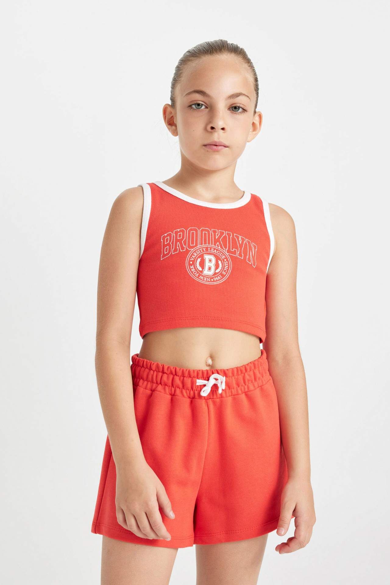 DeFacto DeFactoFit Kız Çocuk Baskılı Fitilli Kaşkorse Atlet Şort 2'li Takım