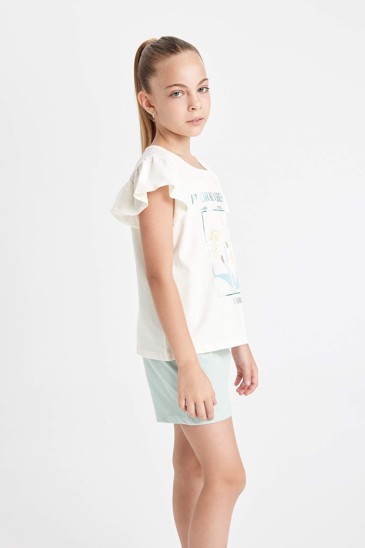 DeFacto DeFactoFit Kız Çocuk Baskılı Kısa Kollu Şortlu Pijama Takımı