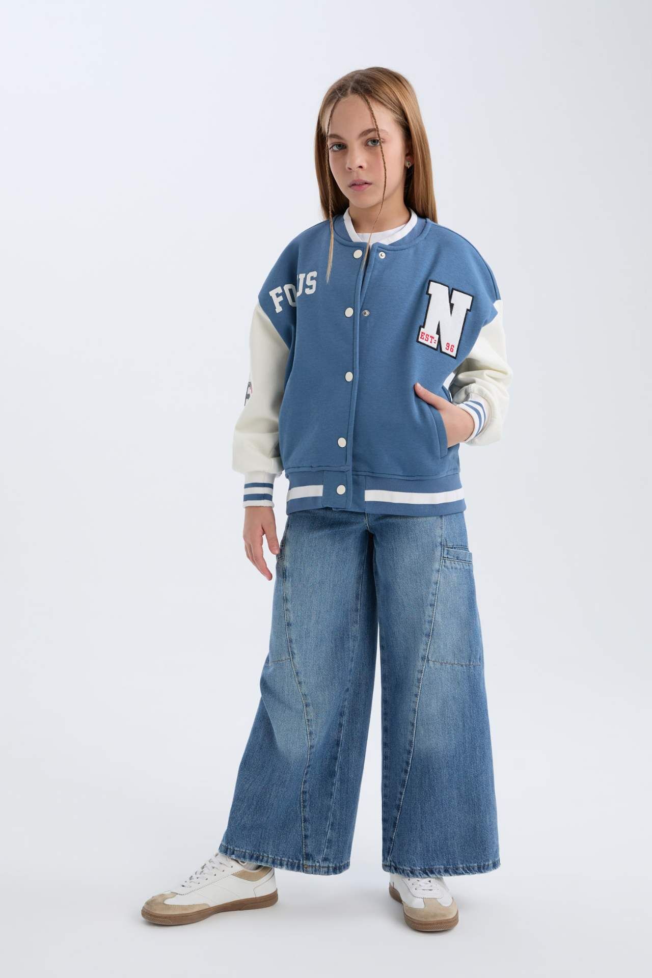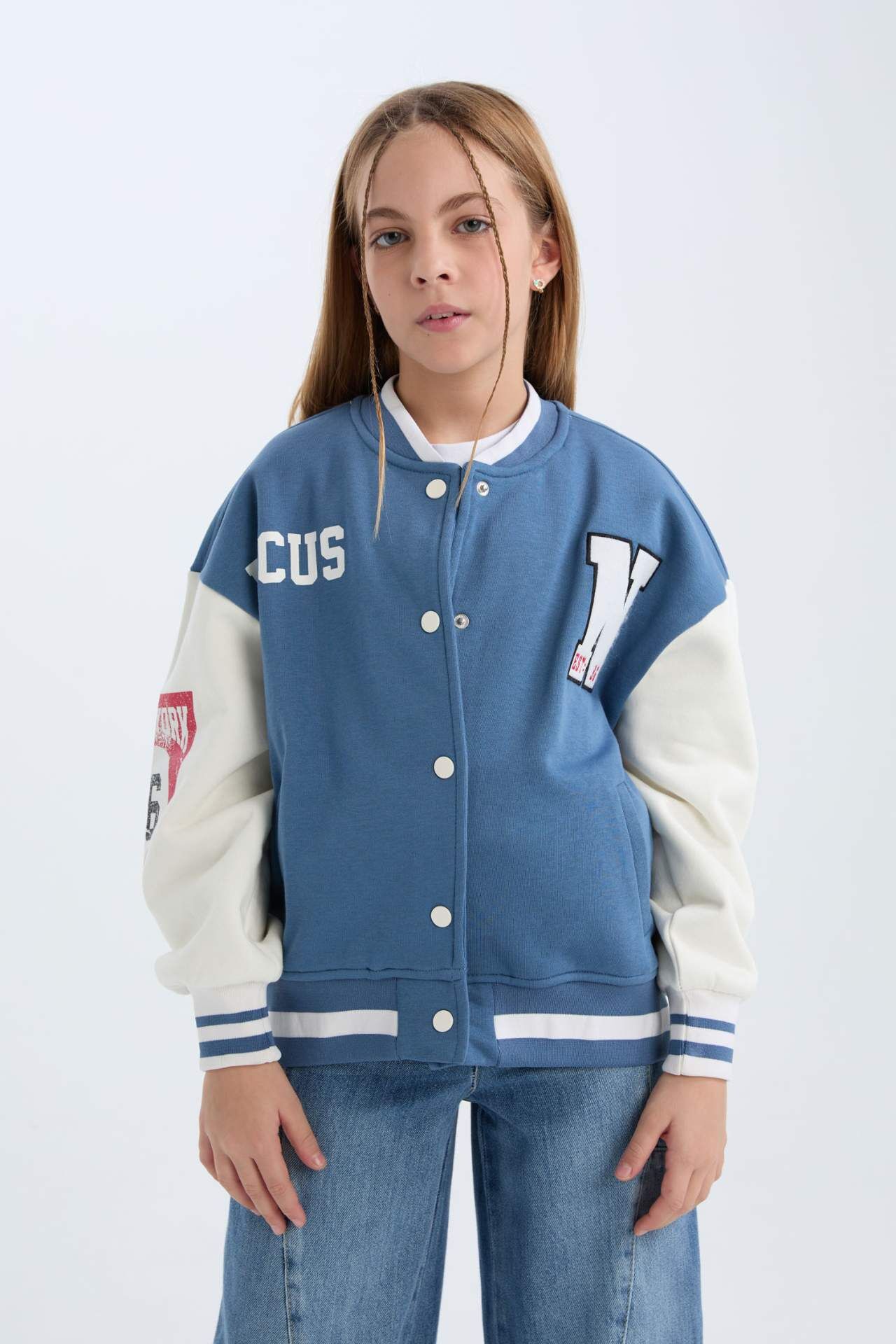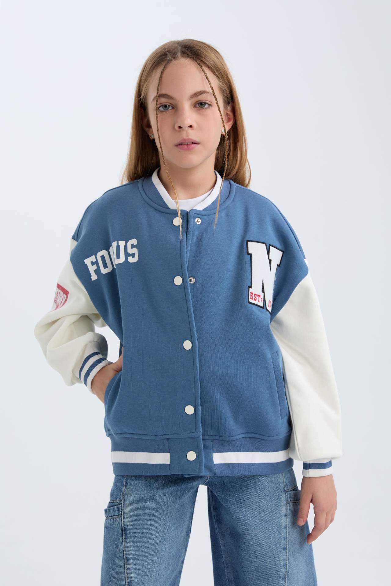 DeFacto Kız Çocuk Baskılı Kolej Yaka Kalın İçi Yumuşak Tüylü Bomber Ceket