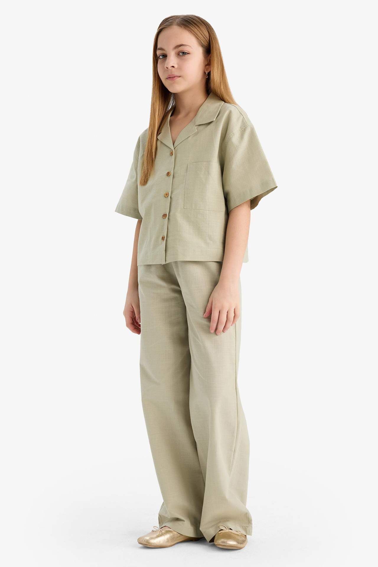 DeFacto Kız Çocuk Beli Lastikli Wide Leg Geniş Bol Paça Pamuklu Pantolon D7611A825SMGN1156