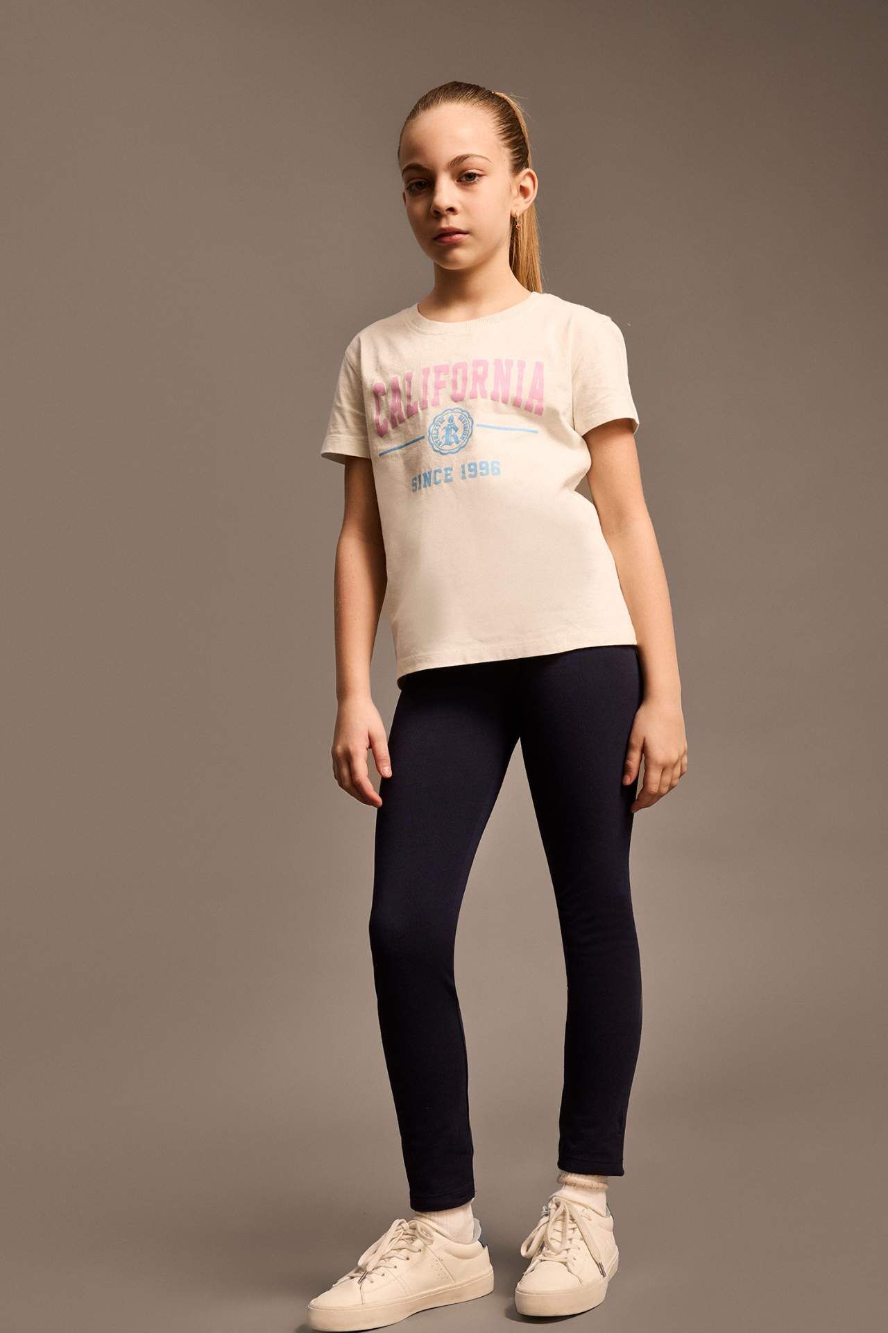 DeFacto Kız Çocuk Bisiklet Yaka Baskılı Kısa Kollu Tişört D8541A825SMER85
