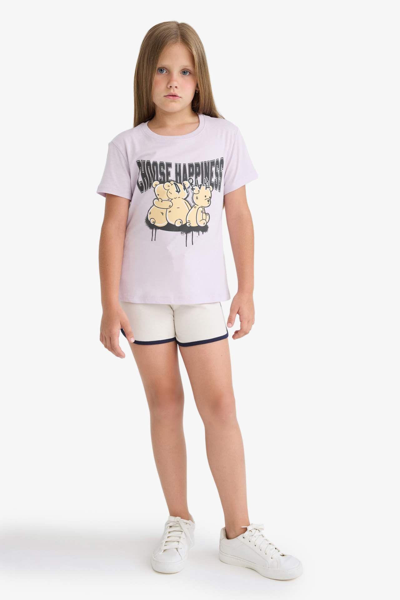 DeFacto Kız Çocuk Bisiklet Yaka Baskılı Kısa Kollu Tişört E0349A825SMPN425