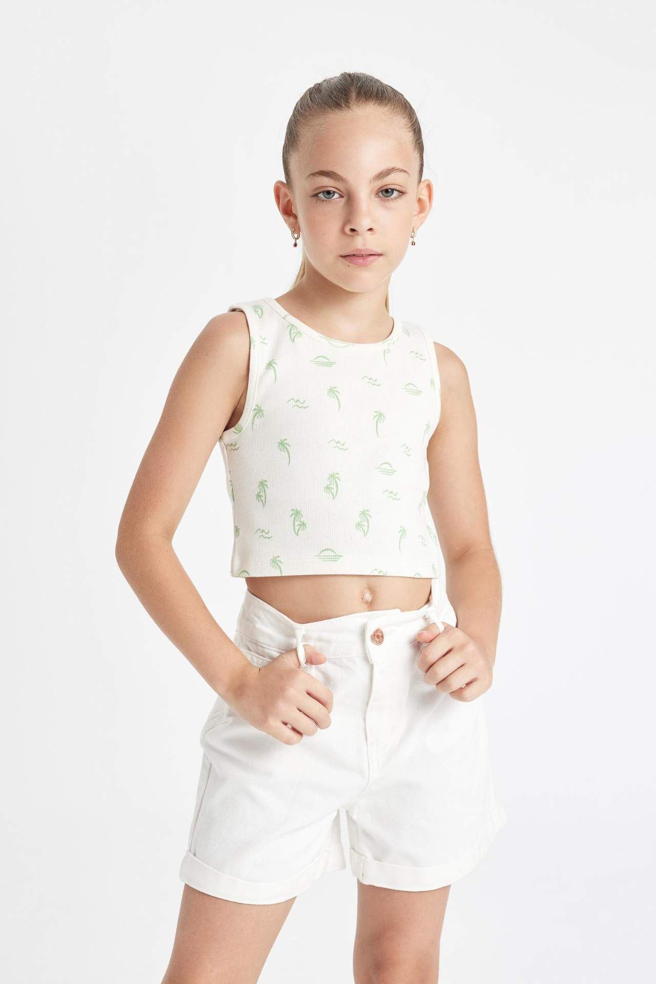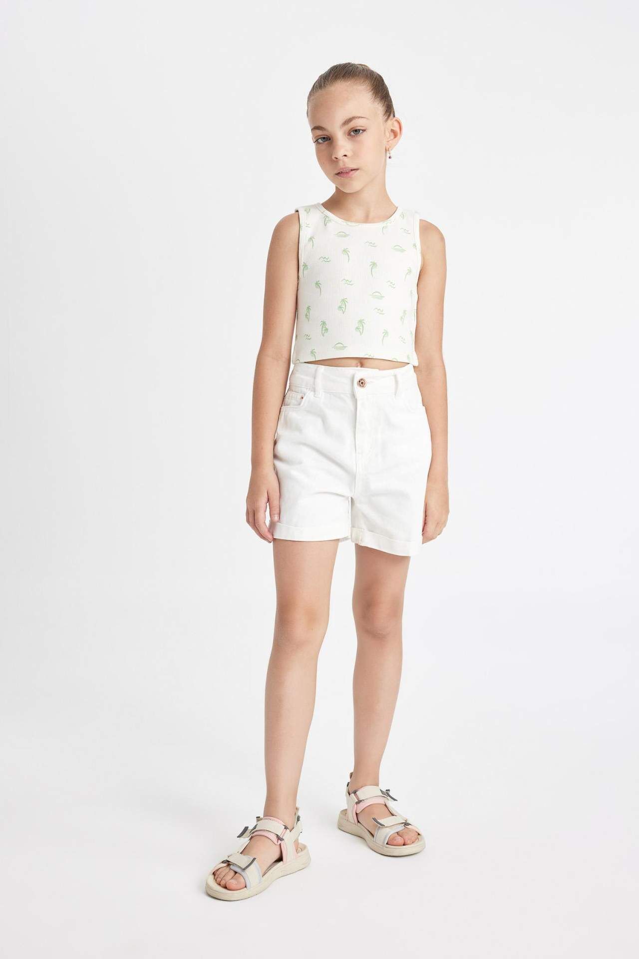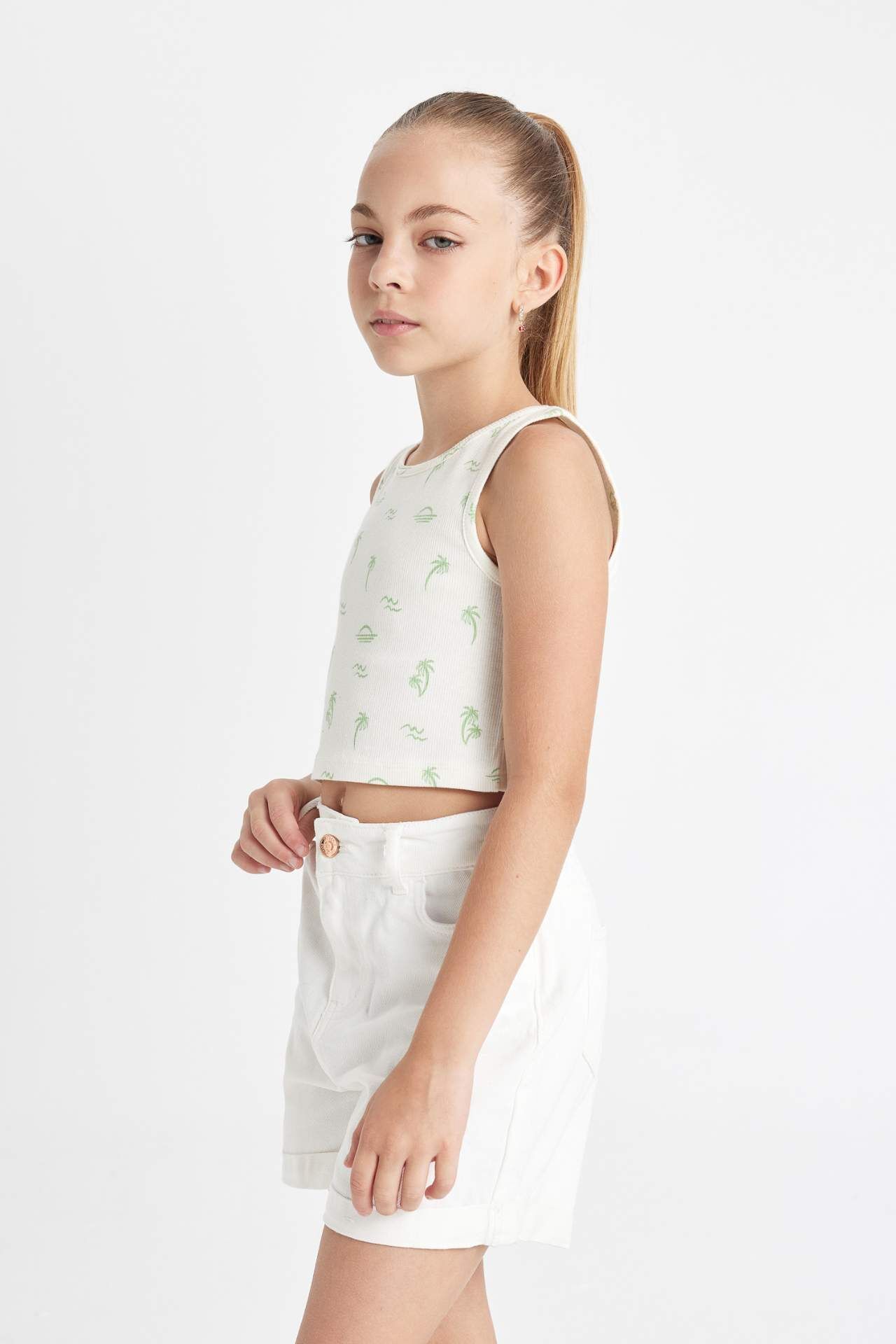 DeFactoFit Kız Çocuk Bisiklet Yaka Hawaii Baskılı Atlet