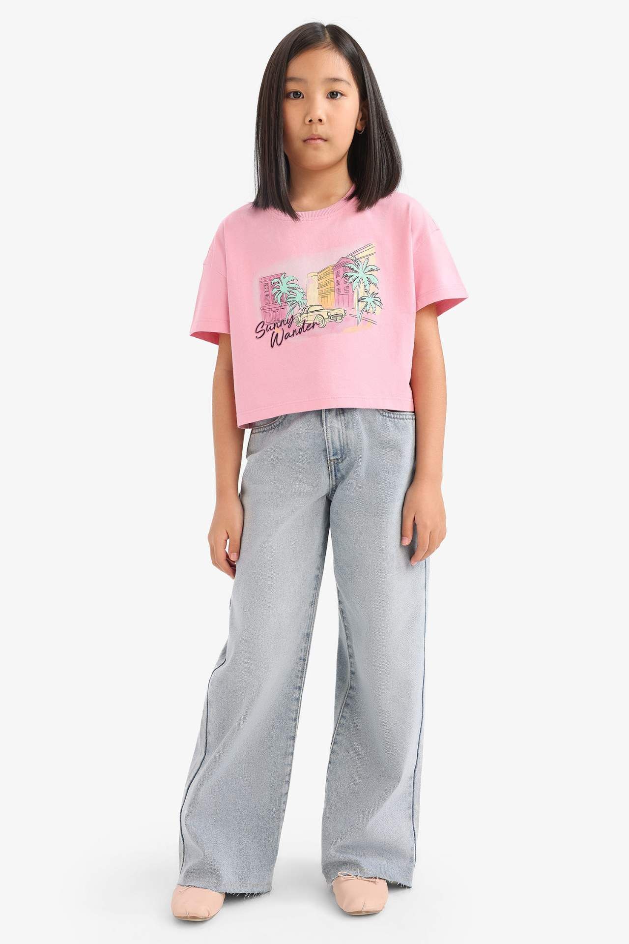 DeFacto Kız Çocuk Bisiklet Yaka Slogan Baskılı Kısa Kollu Tişört E0384A825SMPN666