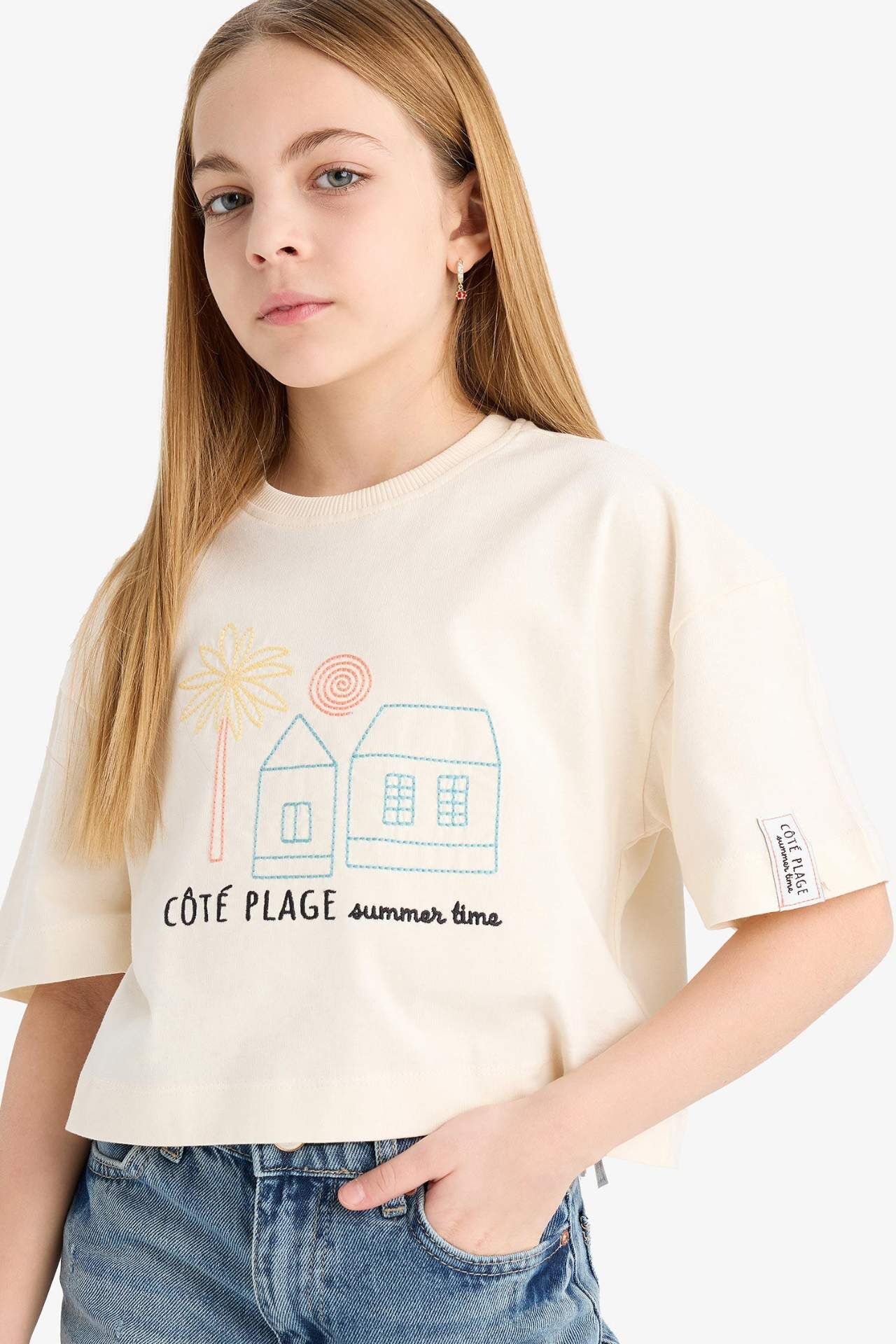 DeFacto Kız Çocuk Boxy Fit Bisiklet Yaka Baskılı Kısa Kollu Tişört E4407A825SMER233