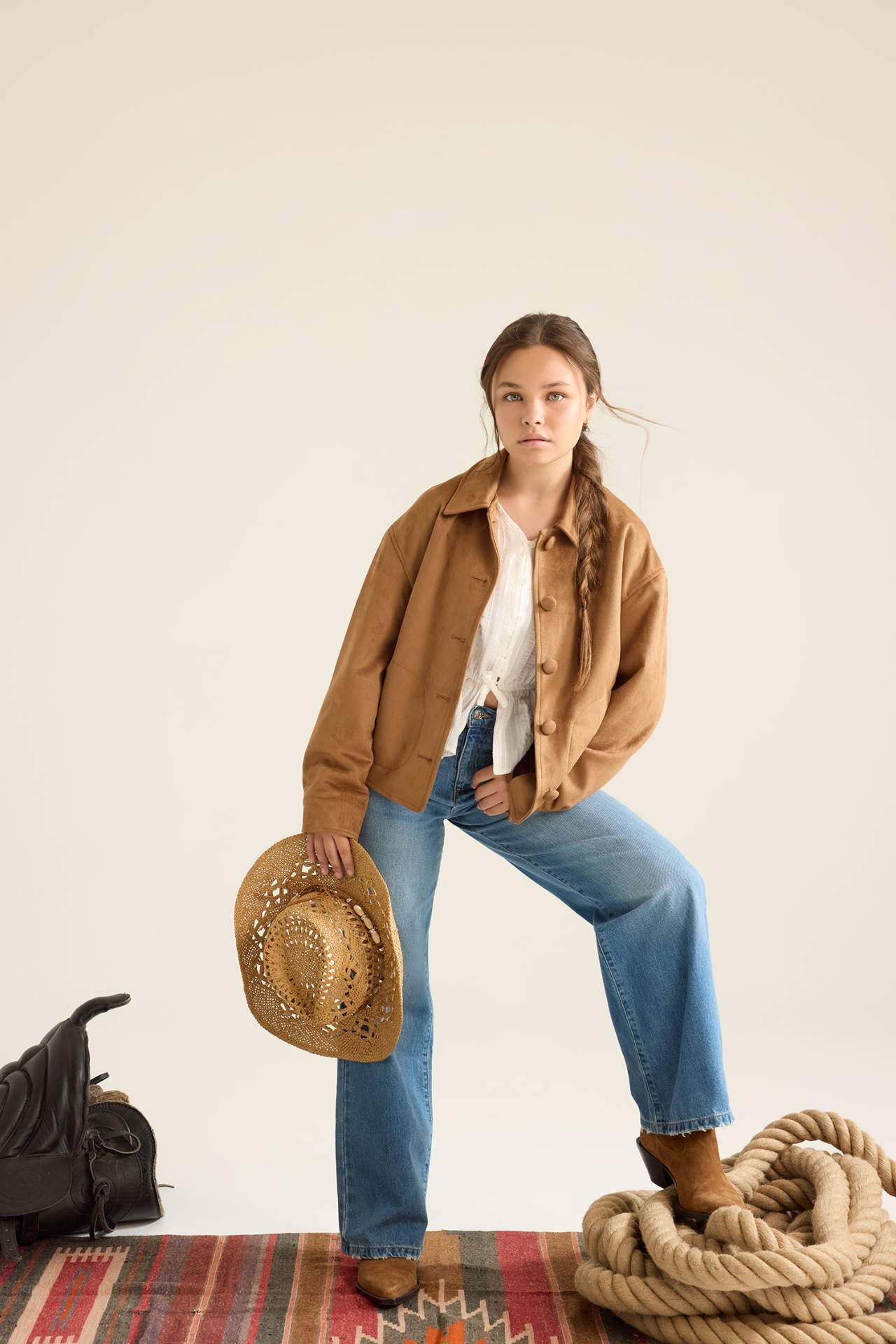 Kız Çocuk Ceket Yaka Düğmeli Süet Mont