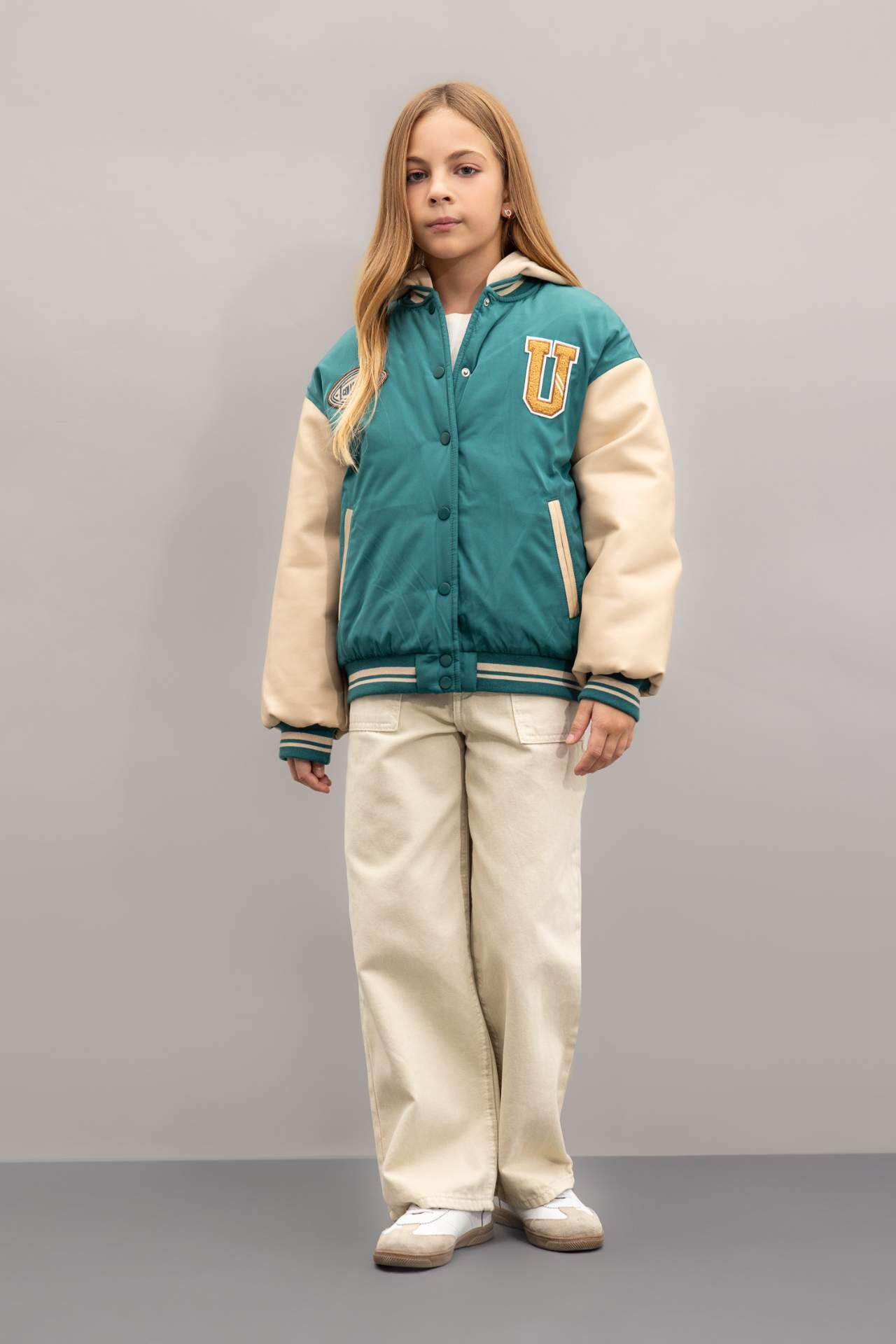 DeFacto Kız Çocuk Çıkarılabilir Kapüşonlu Kolej Yaka Çıtçıtlı Cepli Bomber Mont