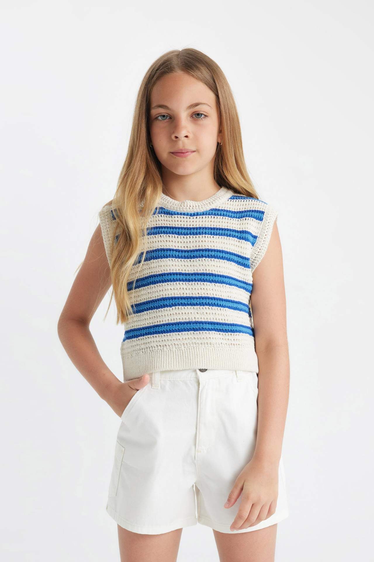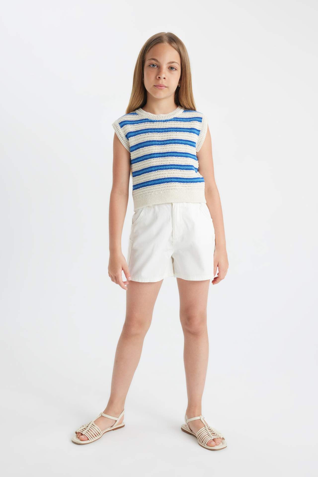DeFactoFit Kız Çocuk Çizgili Ajurlu Atlet