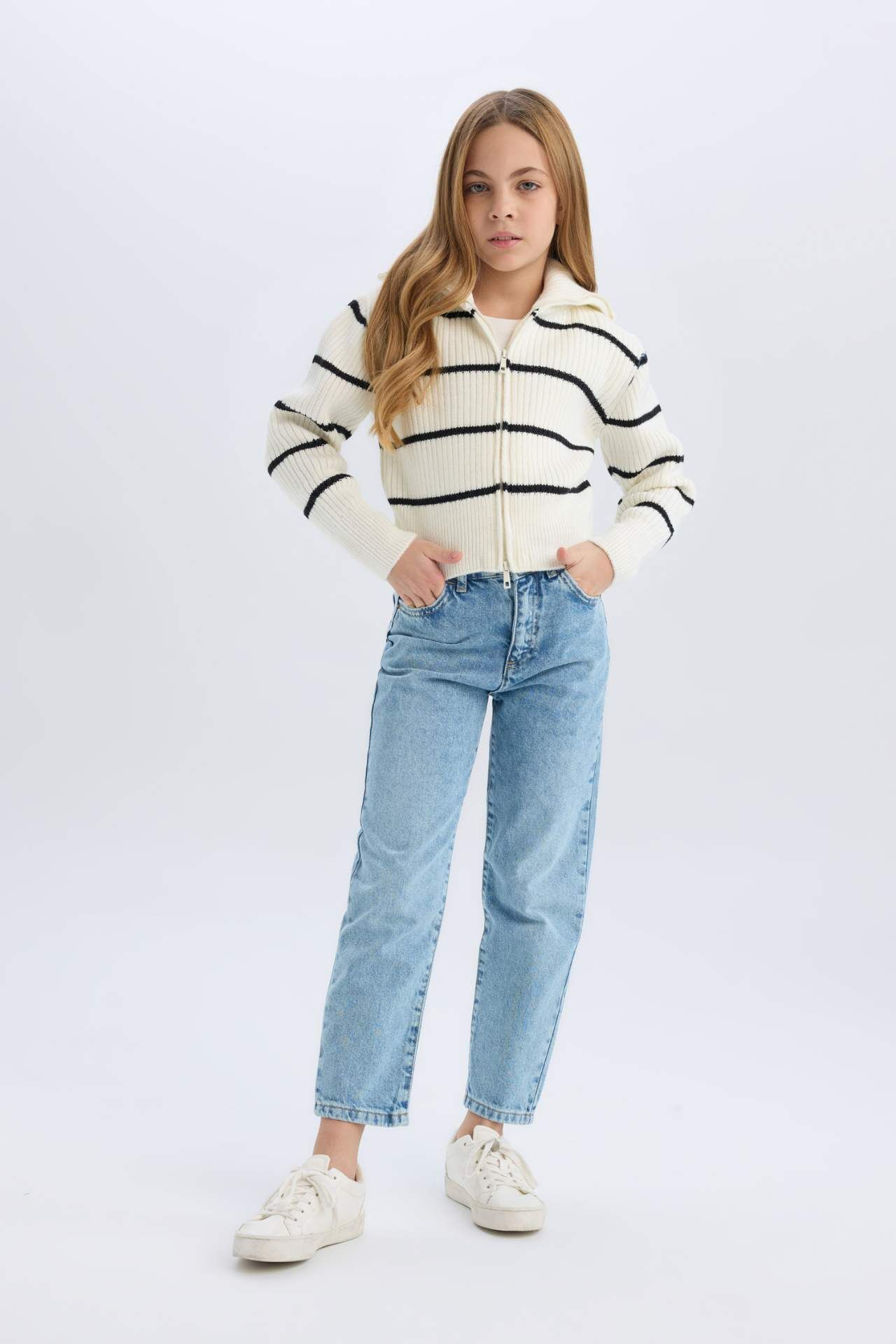 Şık ve rahat Kız Çocuk Çizgili Fermuarlı Triko Hırka, günlük kullanım için mükemmel bir seçenektir. Yüksek kaliteli malzemelerden üretilmiştir ve şık detaylarla süslenmiştir. Kızınızın gardırobuna şıklık katacak bu hırka, her mevsim rahatlıkla giyilebilir. Stil ve konforu bir arada arayanlar için ideal bir seçimdir. Akrilik 100%,Akrilik 100% Manken Bedeni: Göğüs: 0 Boy: 1,36 Basen: 0 Bel: 0