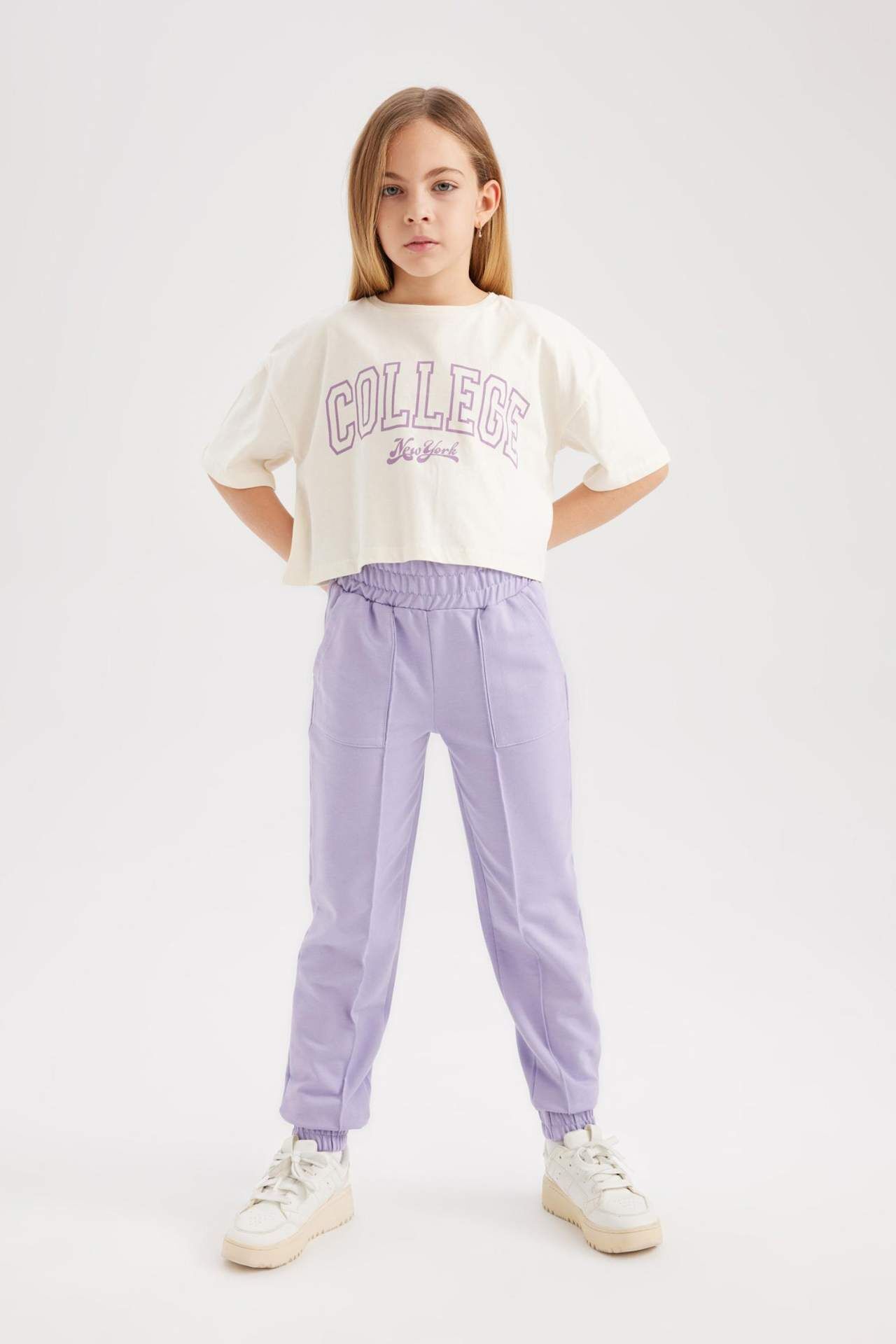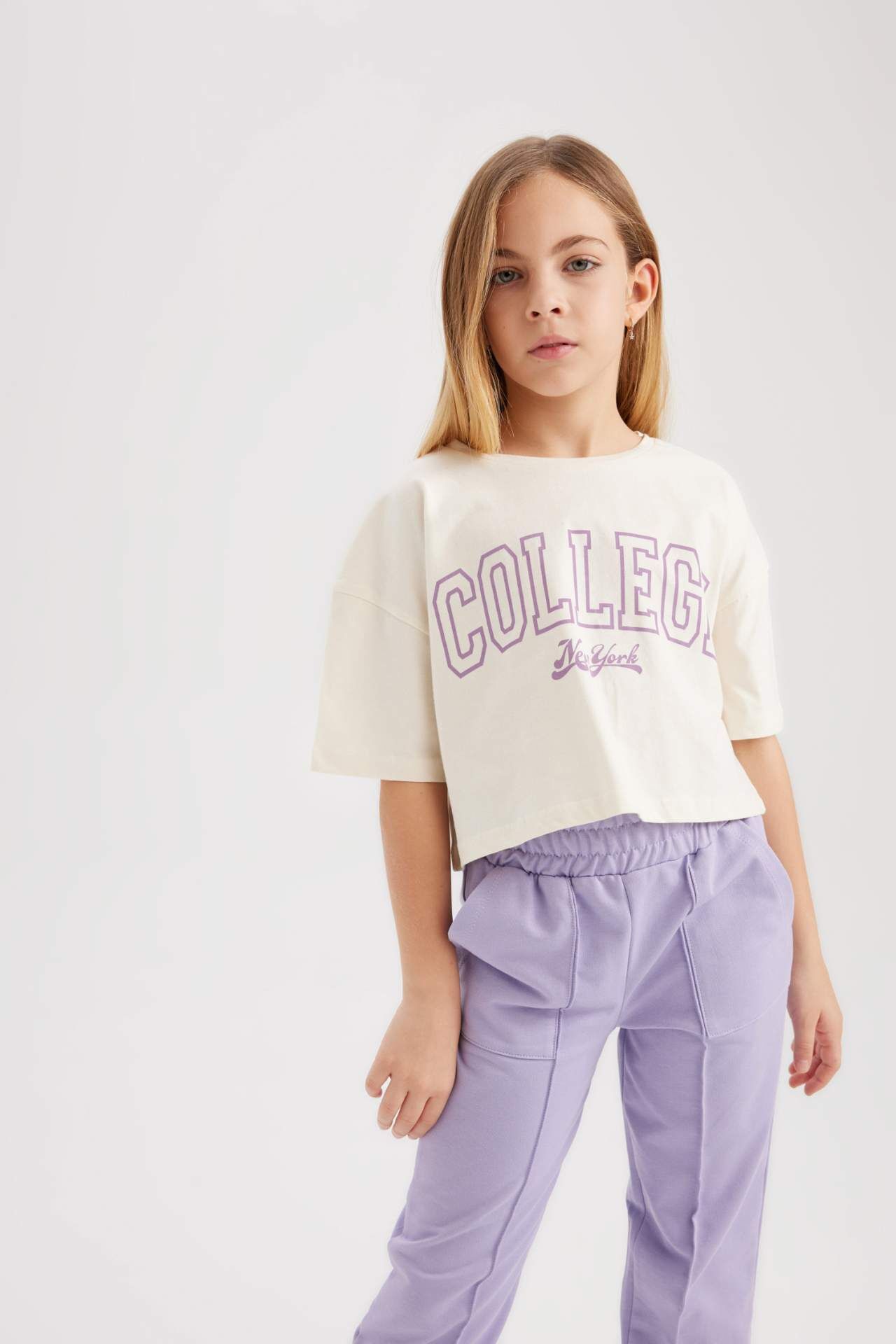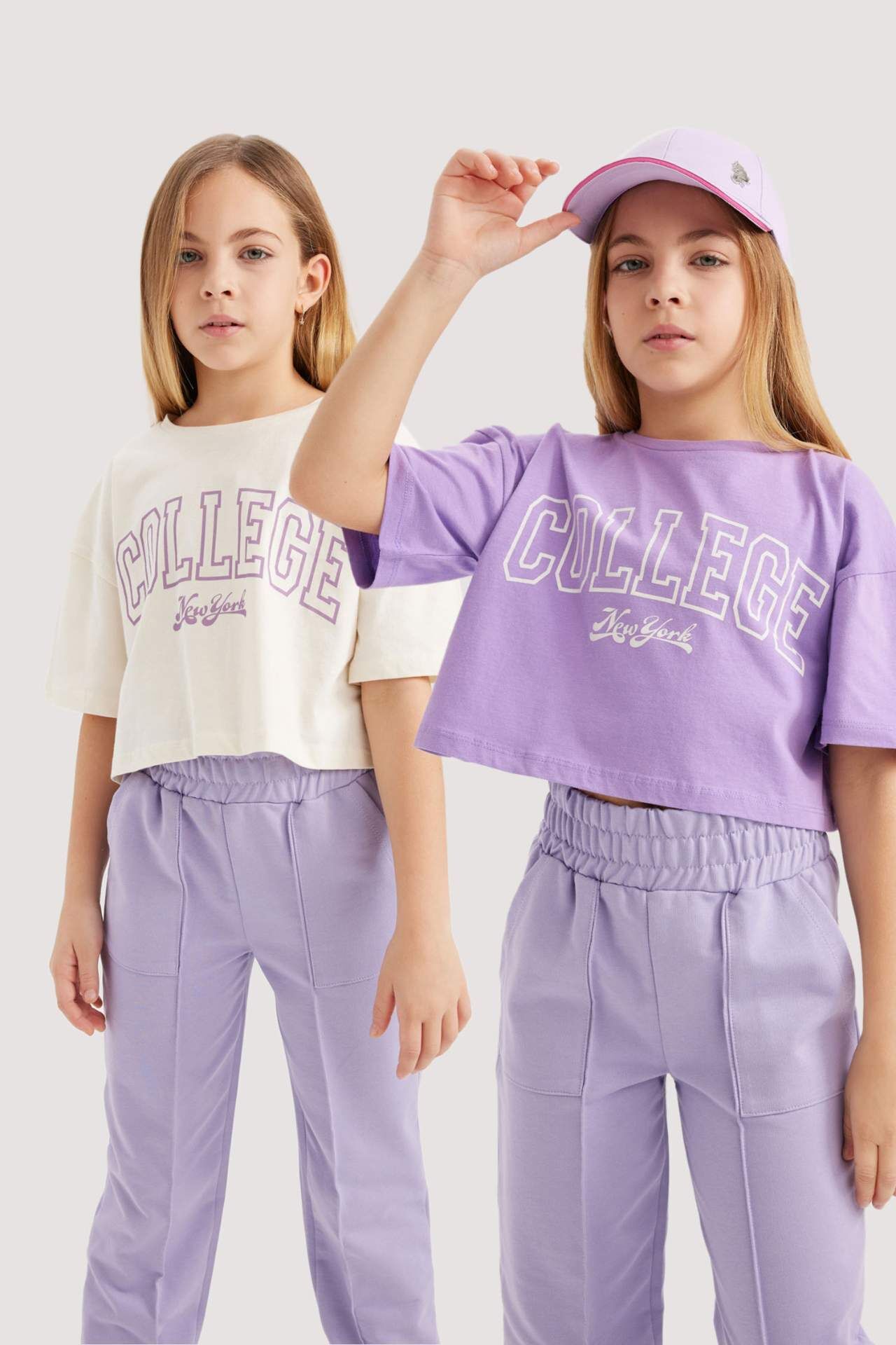 Kız Çocuk Crop Bisiklet Yaka 2'li Kısa Kollu Tişört B7795A8NSER238