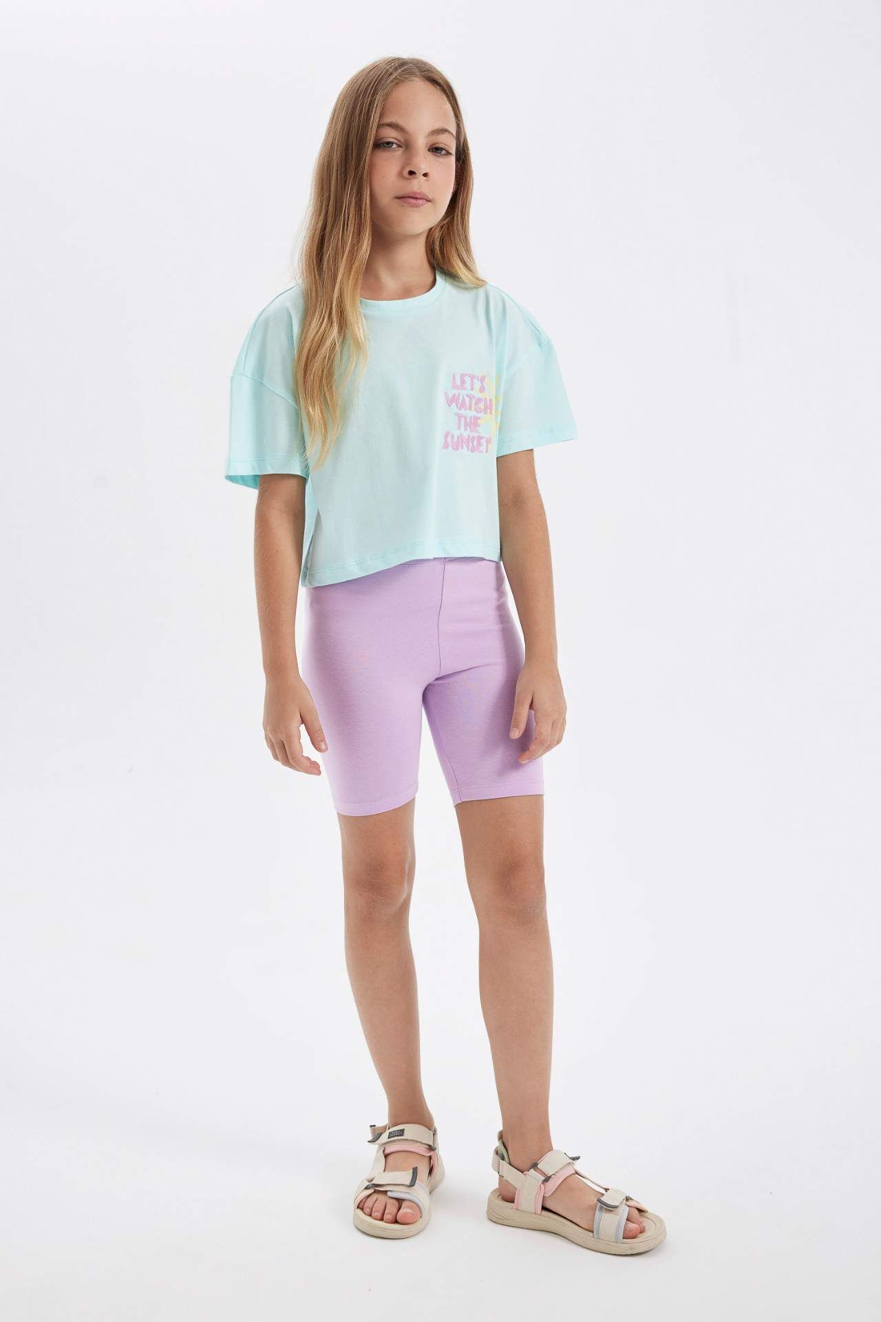 DeFactoFit Kız Çocuk Crop Bisiklet Yaka Baskılı Kısa Kollu Tişört C4506A824SMTR494