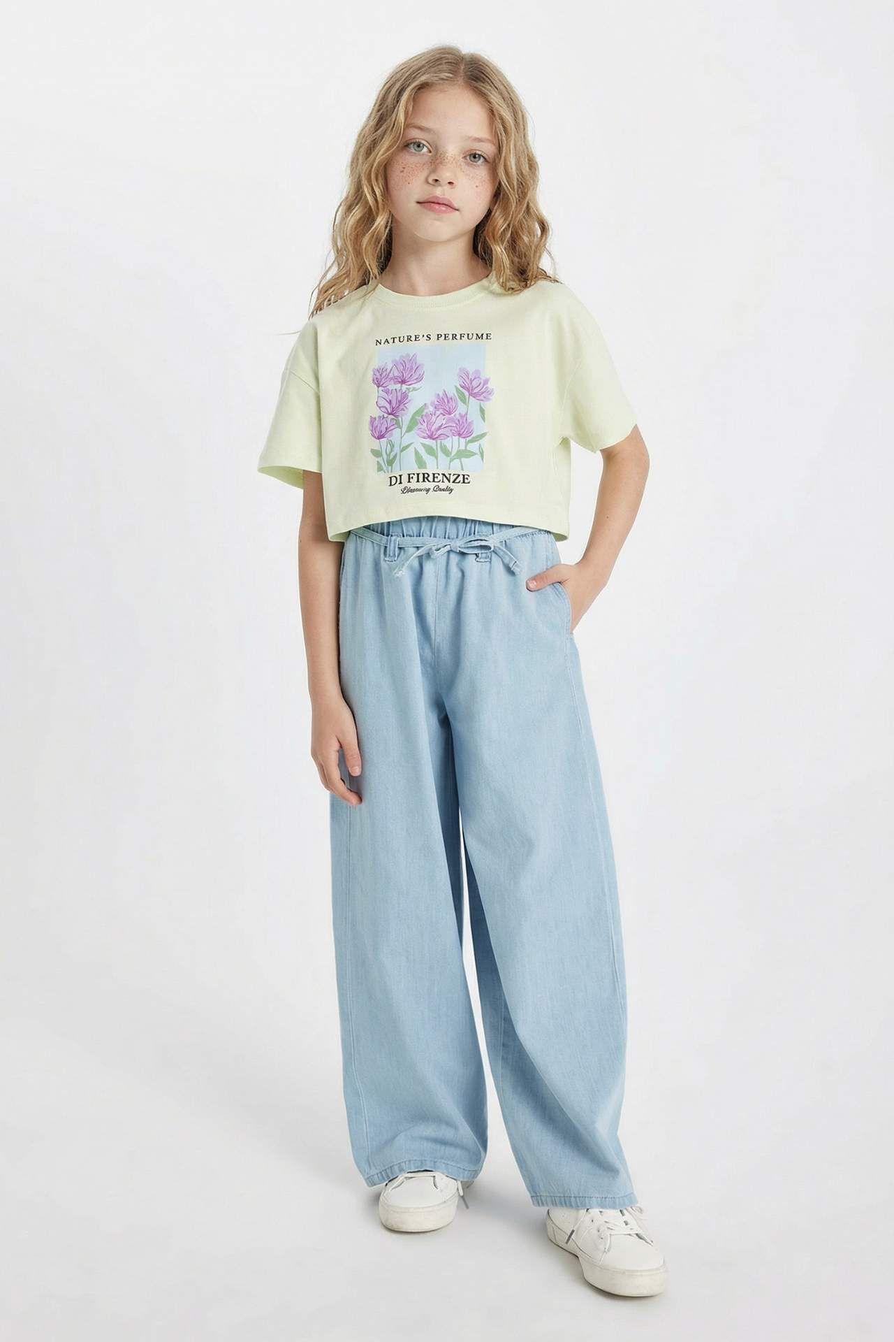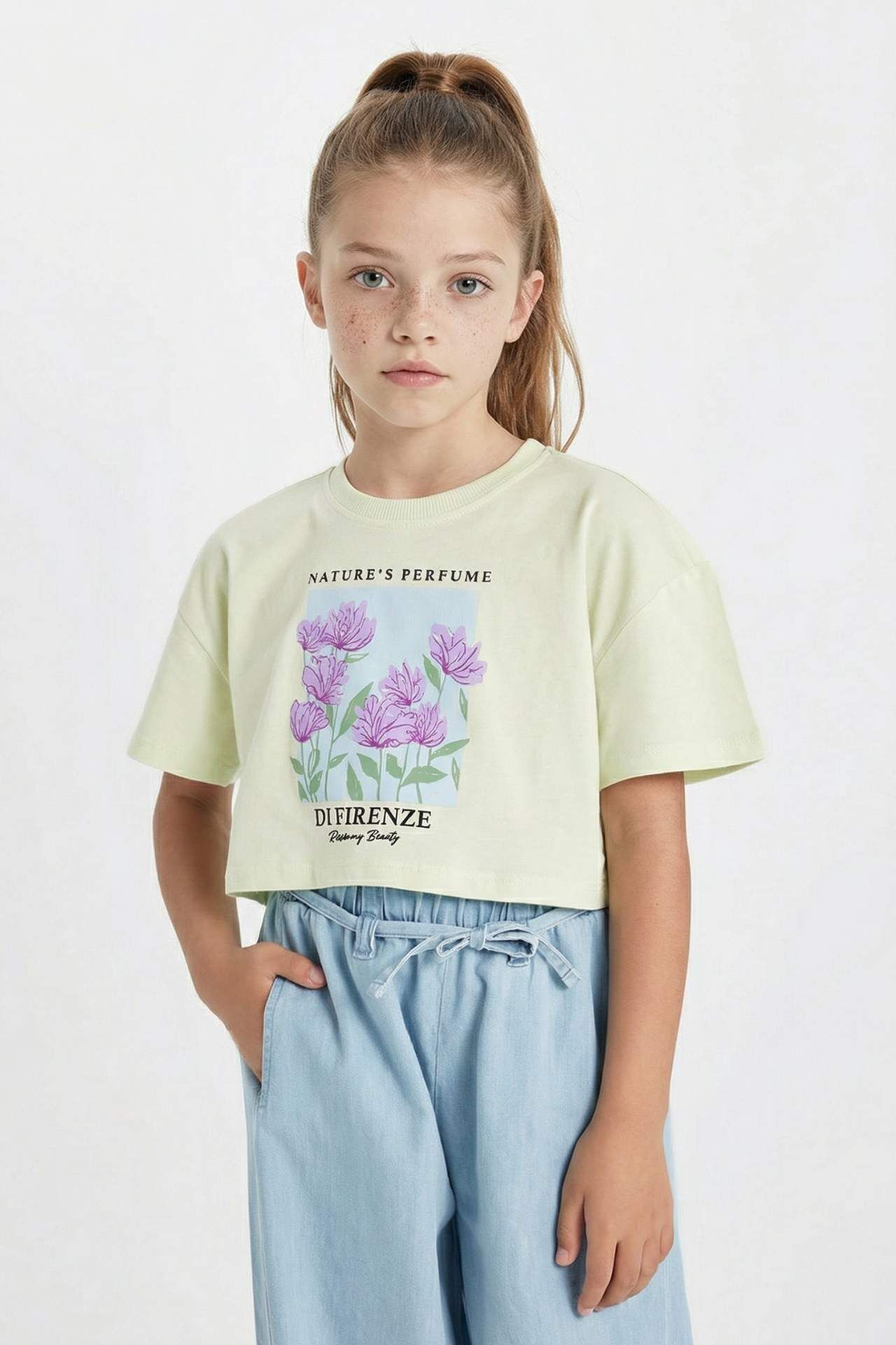 DeFactoFit Kız Çocuk Crop Bisiklet Yaka Baskılı Kısa Kollu Tişört D0869A824HSGN653